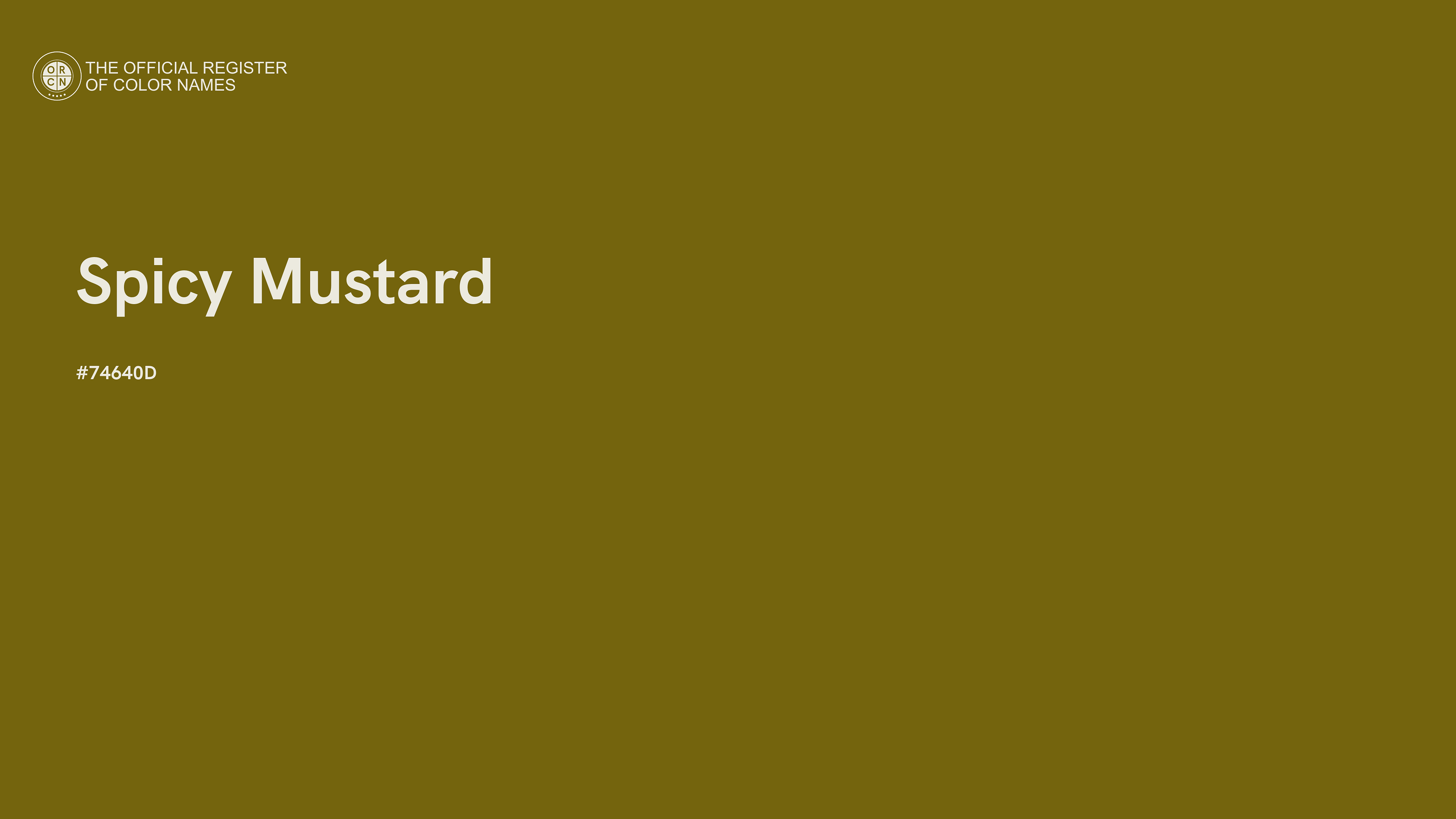 The digital color HEX #74640D, known as "Spicy Mustard", belongs to the Yellow Color Family featuring High Saturation (Saturation Family) and Neutral (Brightness Family).