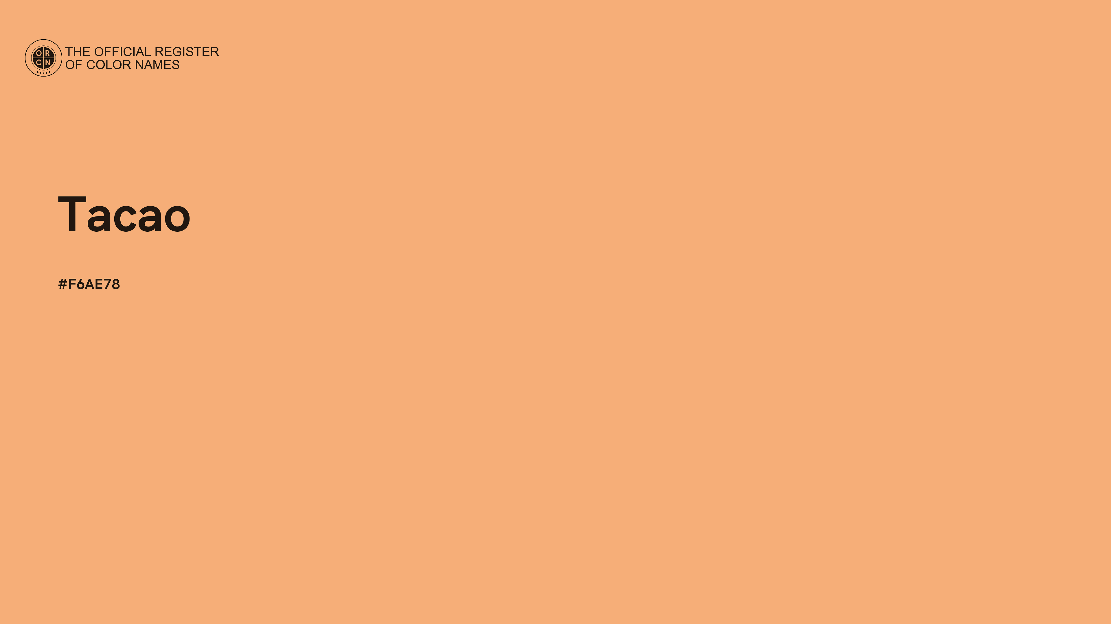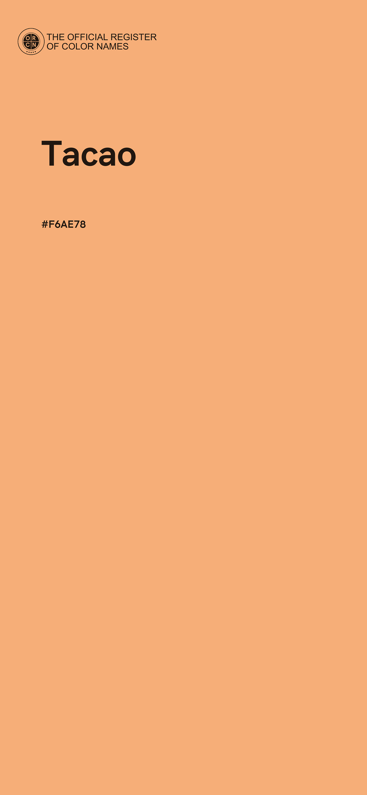 The digital color HEX #F6AE78, known as "Tacao", belongs to the Orange Color Family featuring Full Saturation (Saturation Family) and Very Light (Brightness Family).