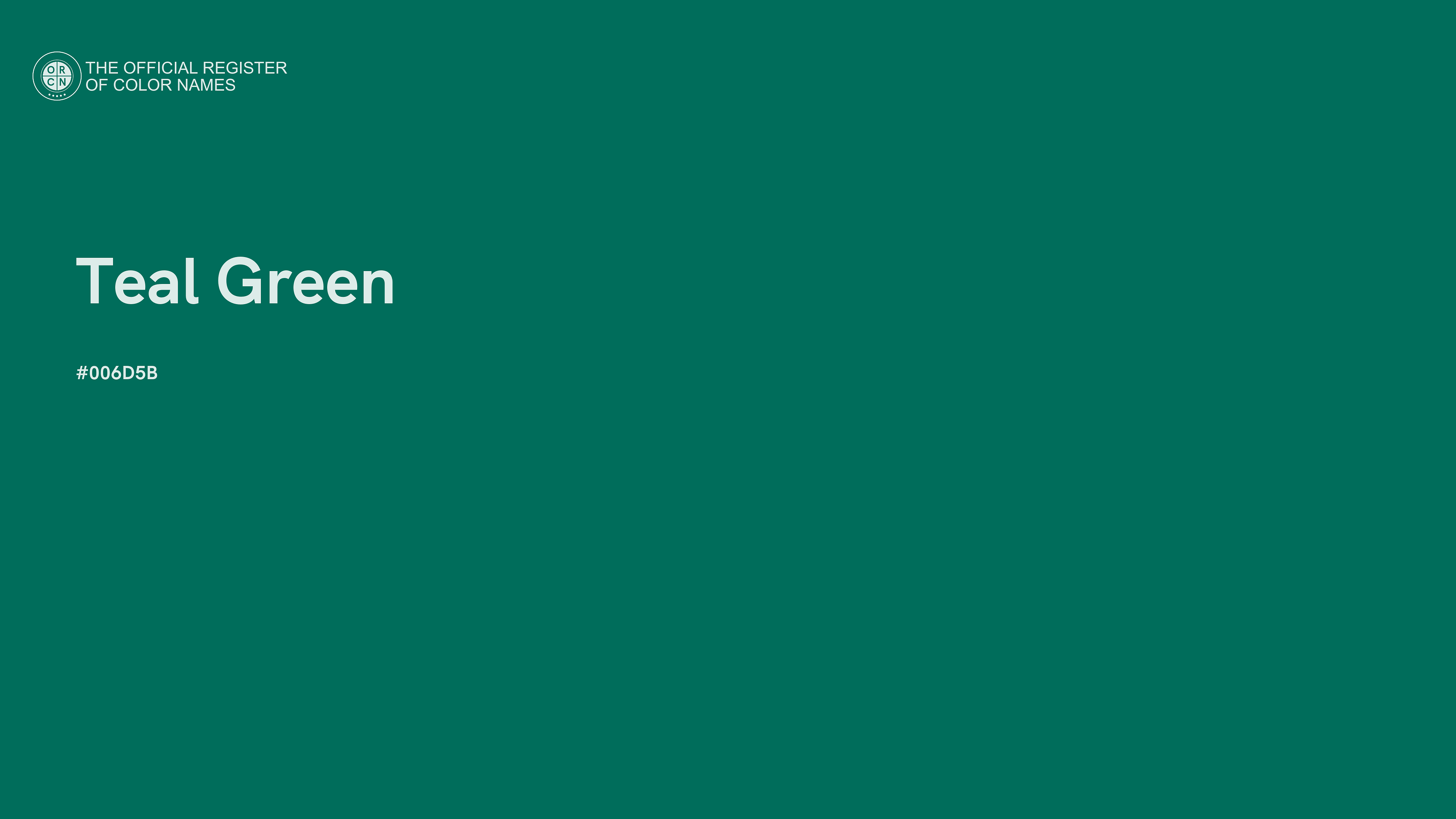 The digital color HEX #006D5B, known as "Teal Green", belongs to the Cyan Color Family featuring Full Saturation (Saturation Family) and Dark (Brightness Family).
