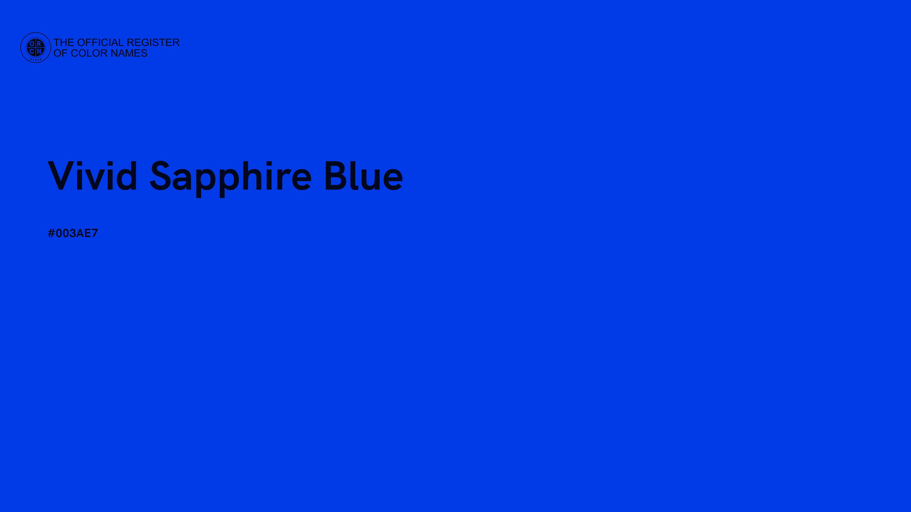The digital color HEX #003AE7, known as "Vivid Sapphire Blue", belongs to the Blue Color Family featuring Full Saturation (Saturation Family) and Light (Brightness Family).