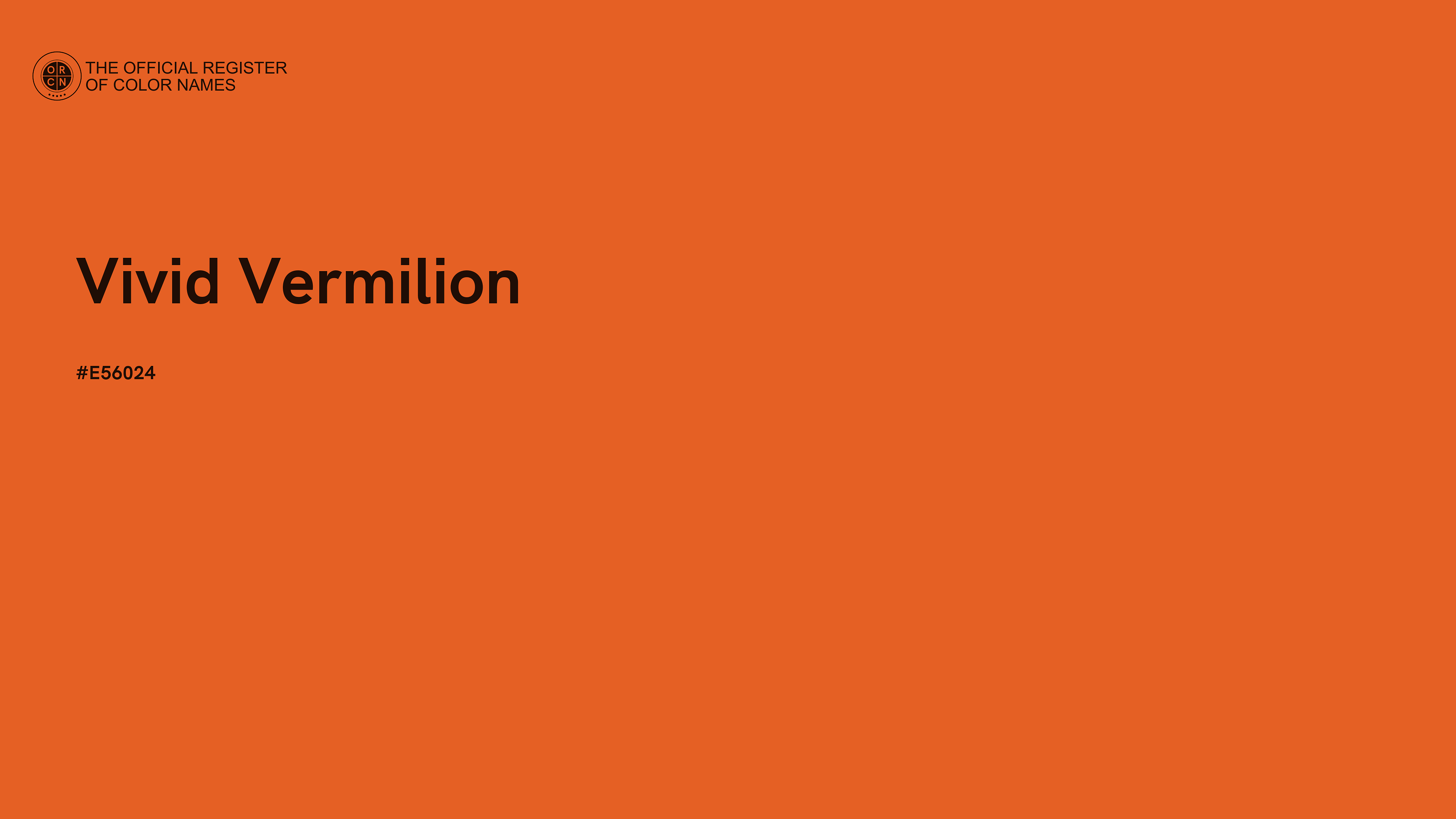 The digital color HEX #E56024, known as "Vivid Vermilion", belongs to the Orange Color Family featuring High Saturation (Saturation Family) and Light (Brightness Family).
