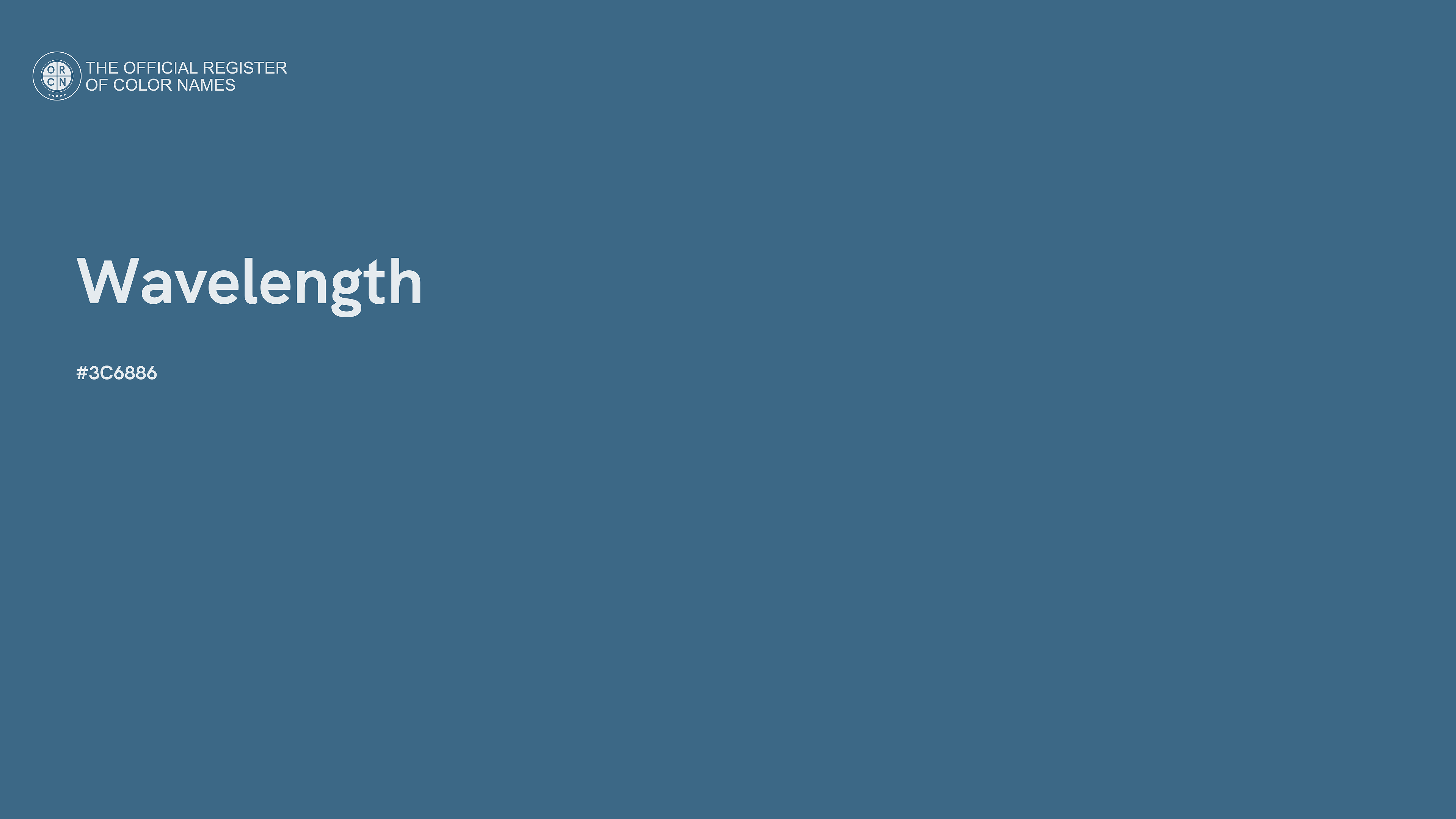 The digital color HEX #3C6886, known as "Wavelength", belongs to the Azure Color Family featuring Mild Saturation (Saturation Family) and Neutral (Brightness Family).