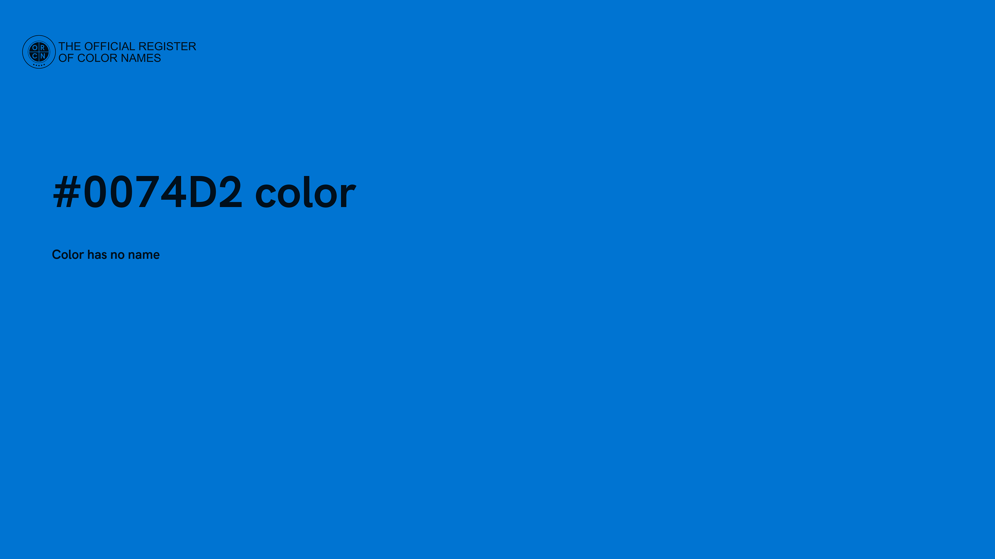 The digital color HEX #0074D2 belongs to the Azure Color Family featuring Full Saturation (Saturation Family) and Light (Brightness Family).