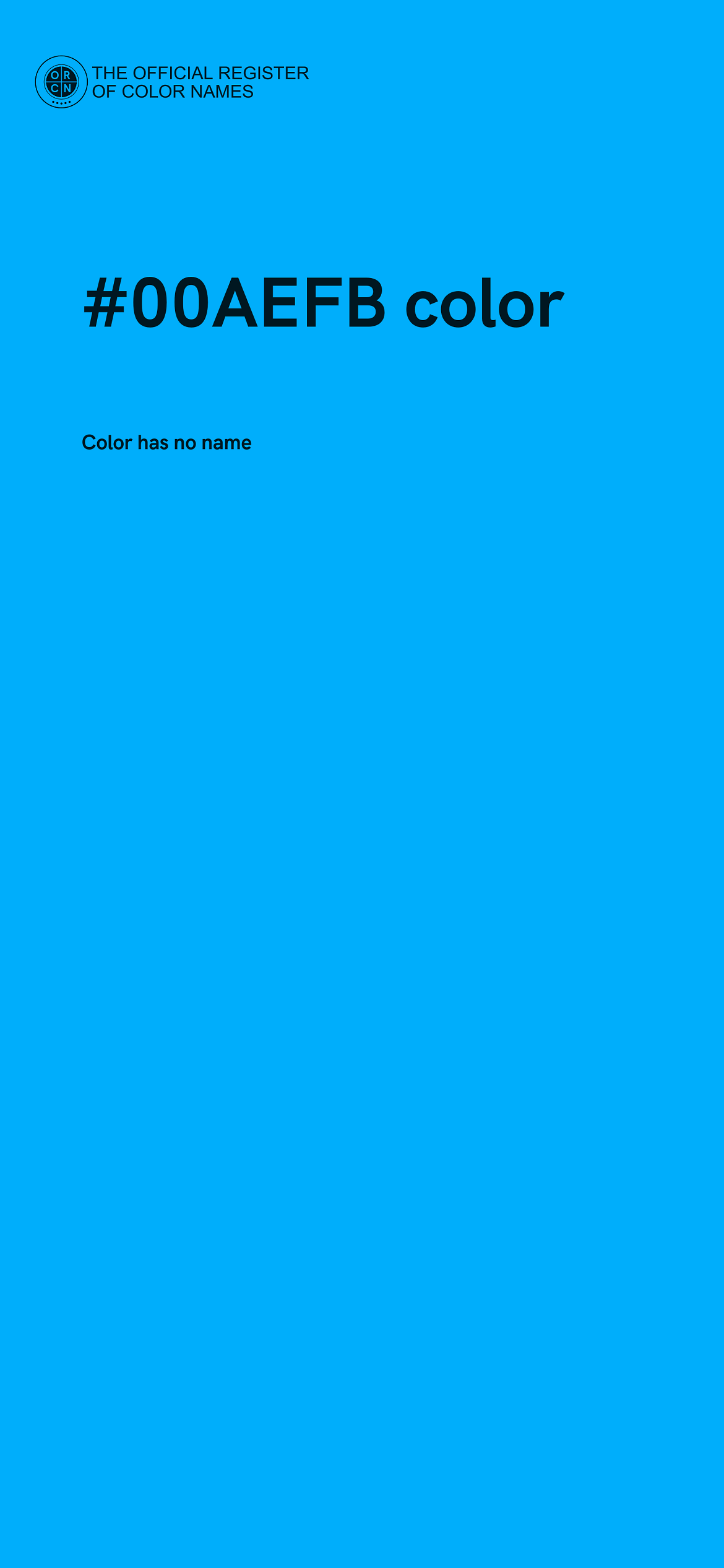 For printing in non digital world, #00AEFB is represented in CMYK as 98 Cyan, 30 Magenta, 0 Yellow, and 2 Black (Key) (C:98 M:30 Y:0 K:2).