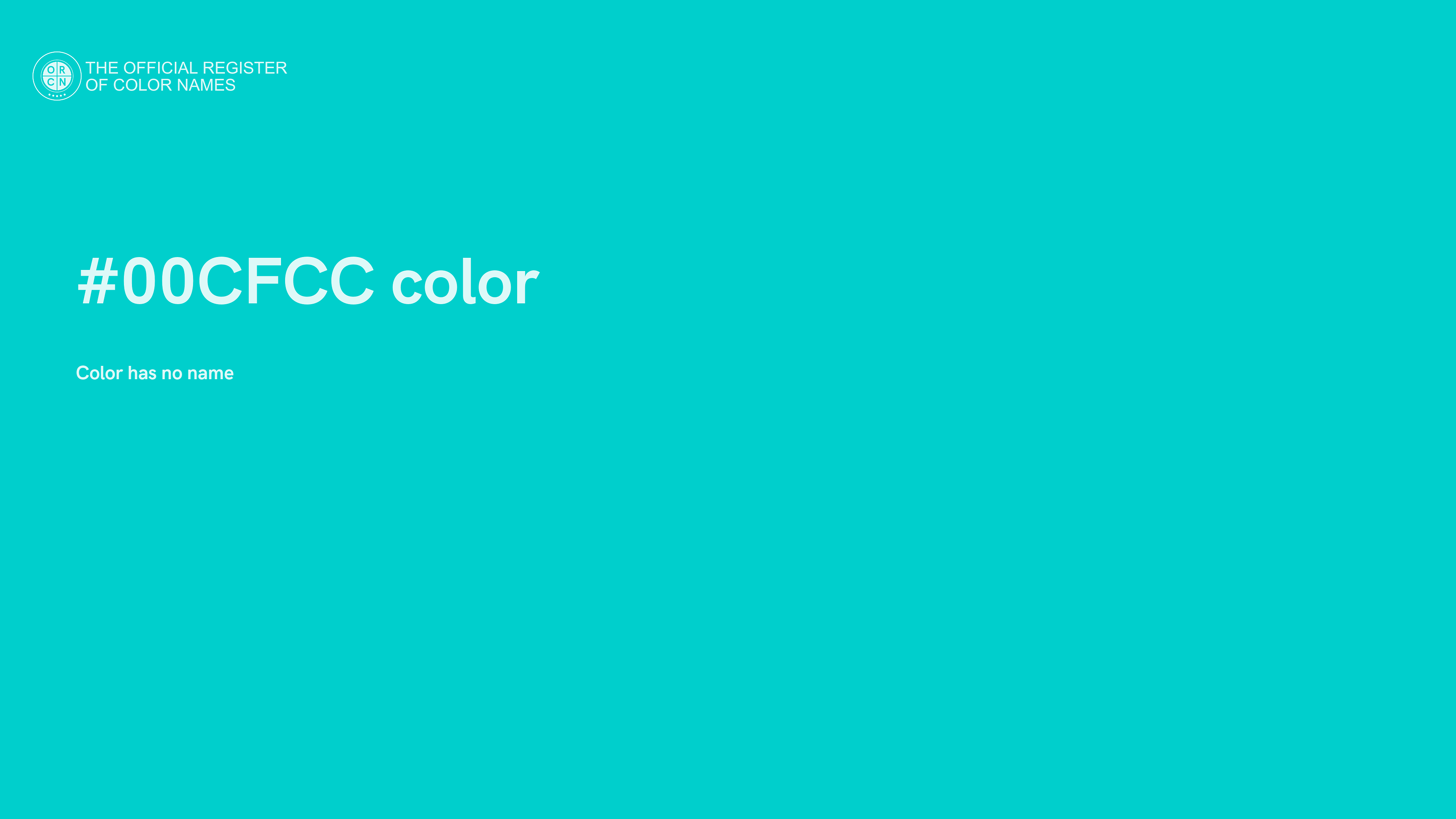 The digital color HEX #00CFCC belongs to the Cyan Color Family featuring Full Saturation (Saturation Family) and Light (Brightness Family).