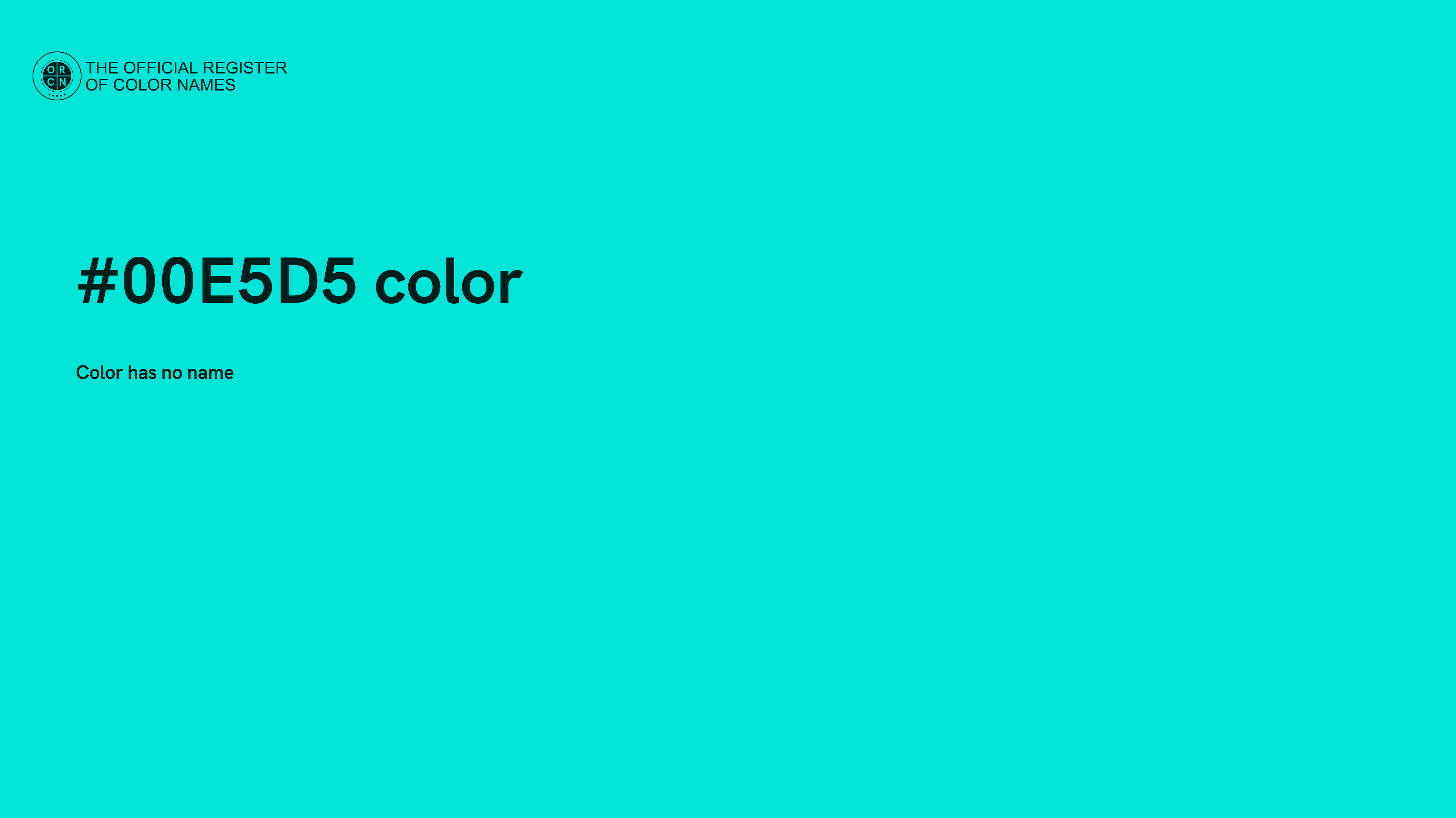 The digital color HEX #00E5D5 belongs to the Cyan Color Family featuring Full Saturation (Saturation Family) and Light (Brightness Family).