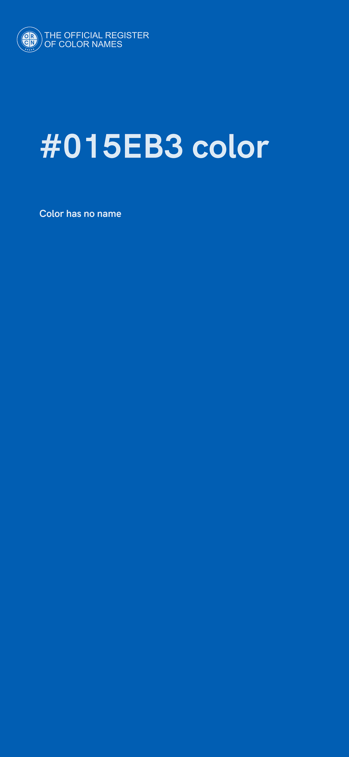 The digital color HEX #015EB3 belongs to the Azure Color Family featuring Full Saturation (Saturation Family) and Neutral (Brightness Family).