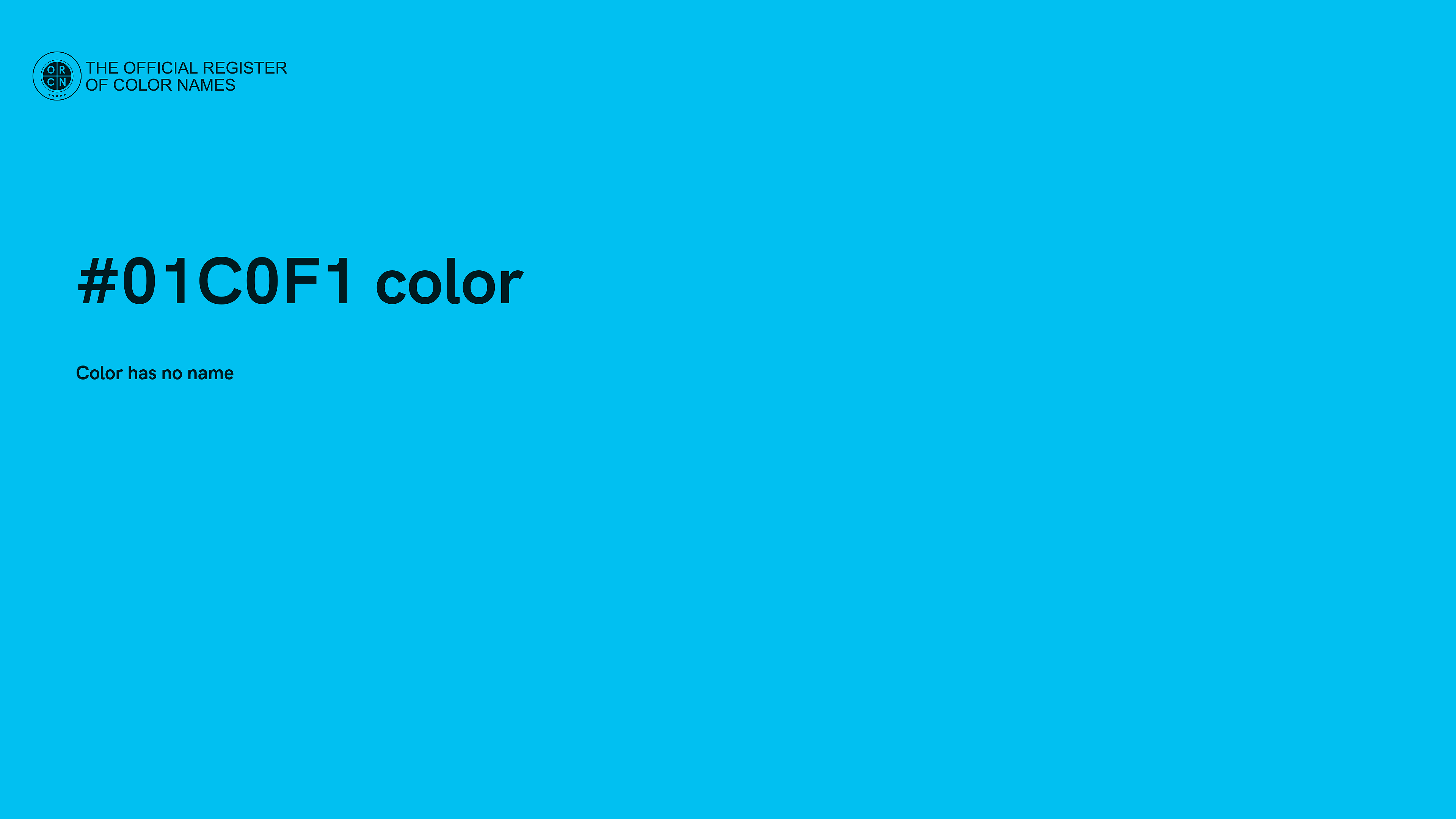 The digital color HEX #01C0F1 belongs to the Cyan Color Family featuring Full Saturation (Saturation Family) and Light (Brightness Family).
