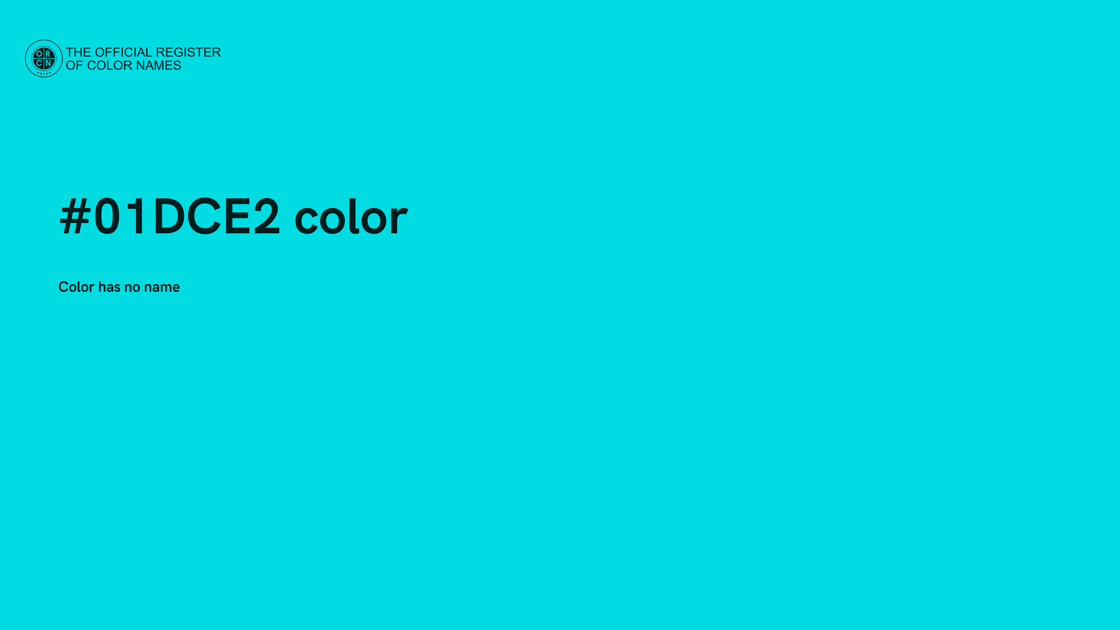The digital color HEX #01DCE2 belongs to the Cyan Color Family featuring Full Saturation (Saturation Family) and Light (Brightness Family).