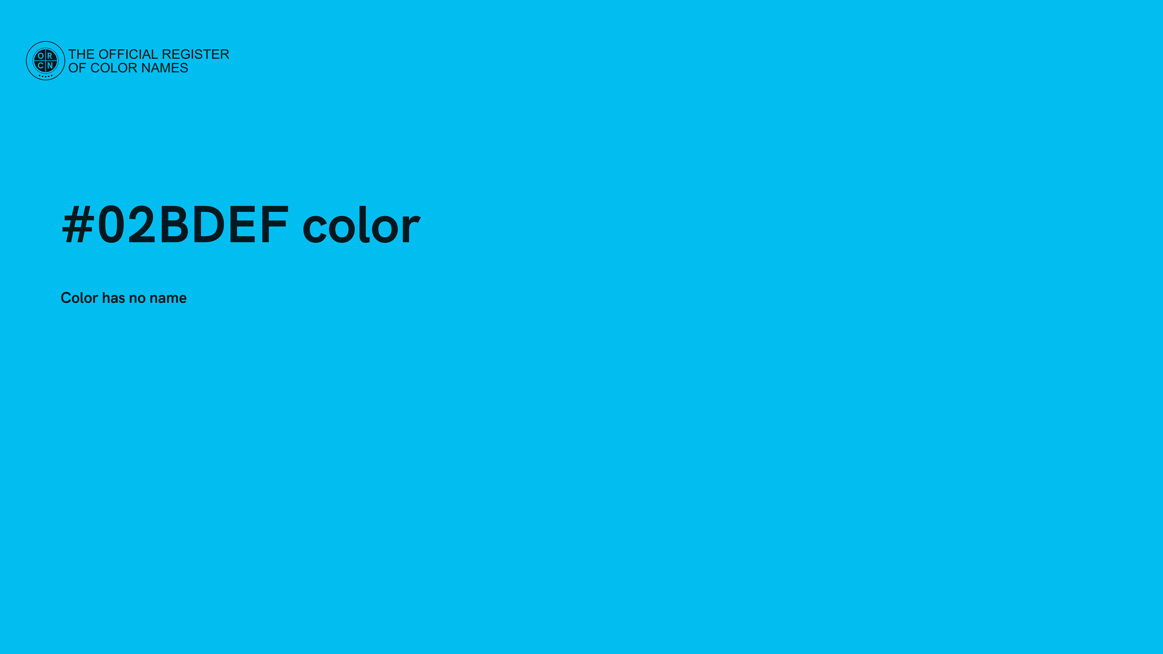The digital color HEX #02BDEF belongs to the Cyan Color Family featuring Full Saturation (Saturation Family) and Light (Brightness Family).