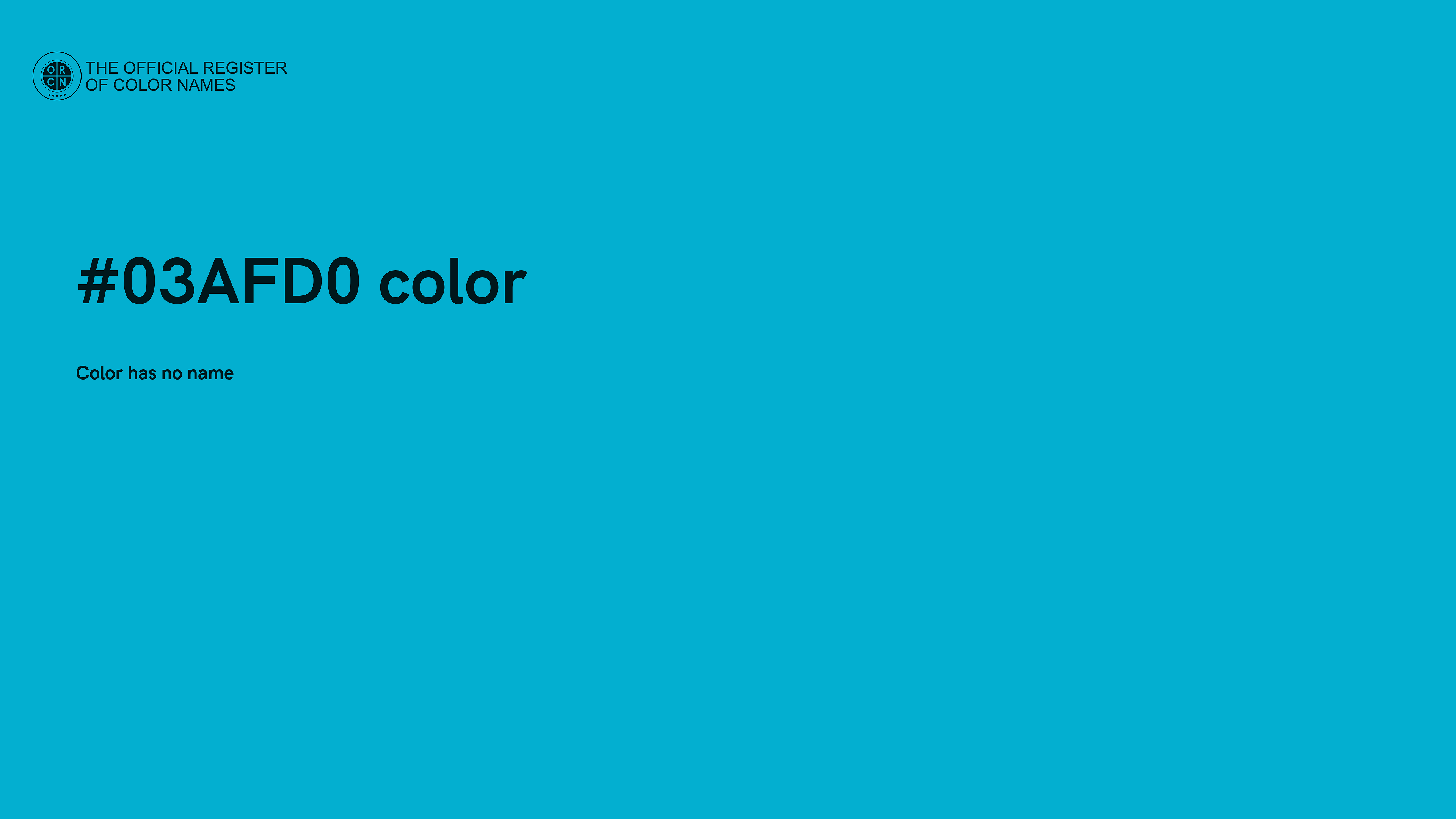 For printing in non digital world, #03AFD0 is represented in CMYK as 80 Cyan, 13 Magenta, 0 Yellow, and 18 Black (Key) (C:80 M:13 Y:0 K:18).