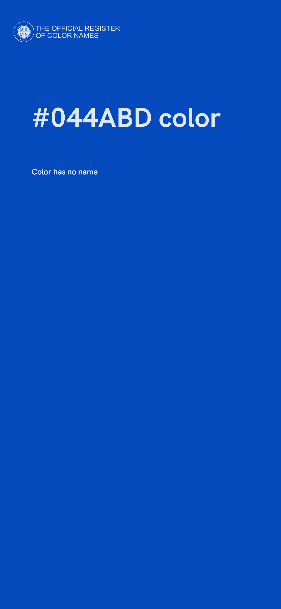 The digital color HEX #044ABD belongs to the Azure Color Family featuring Full Saturation (Saturation Family) and Neutral (Brightness Family).