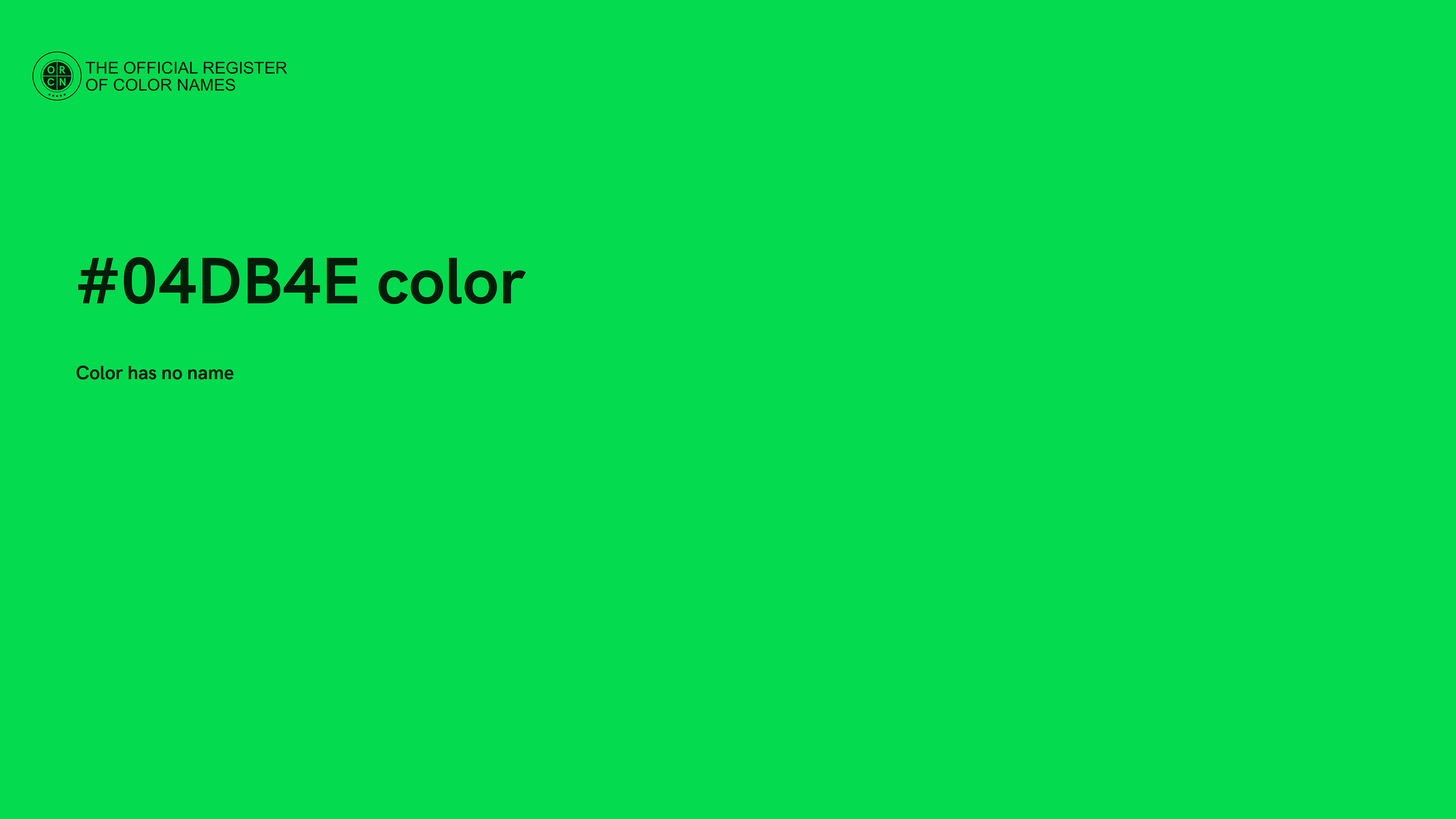The digital color HEX #04DB4E belongs to the Spring Green Color Family featuring Full Saturation (Saturation Family) and Light (Brightness Family).