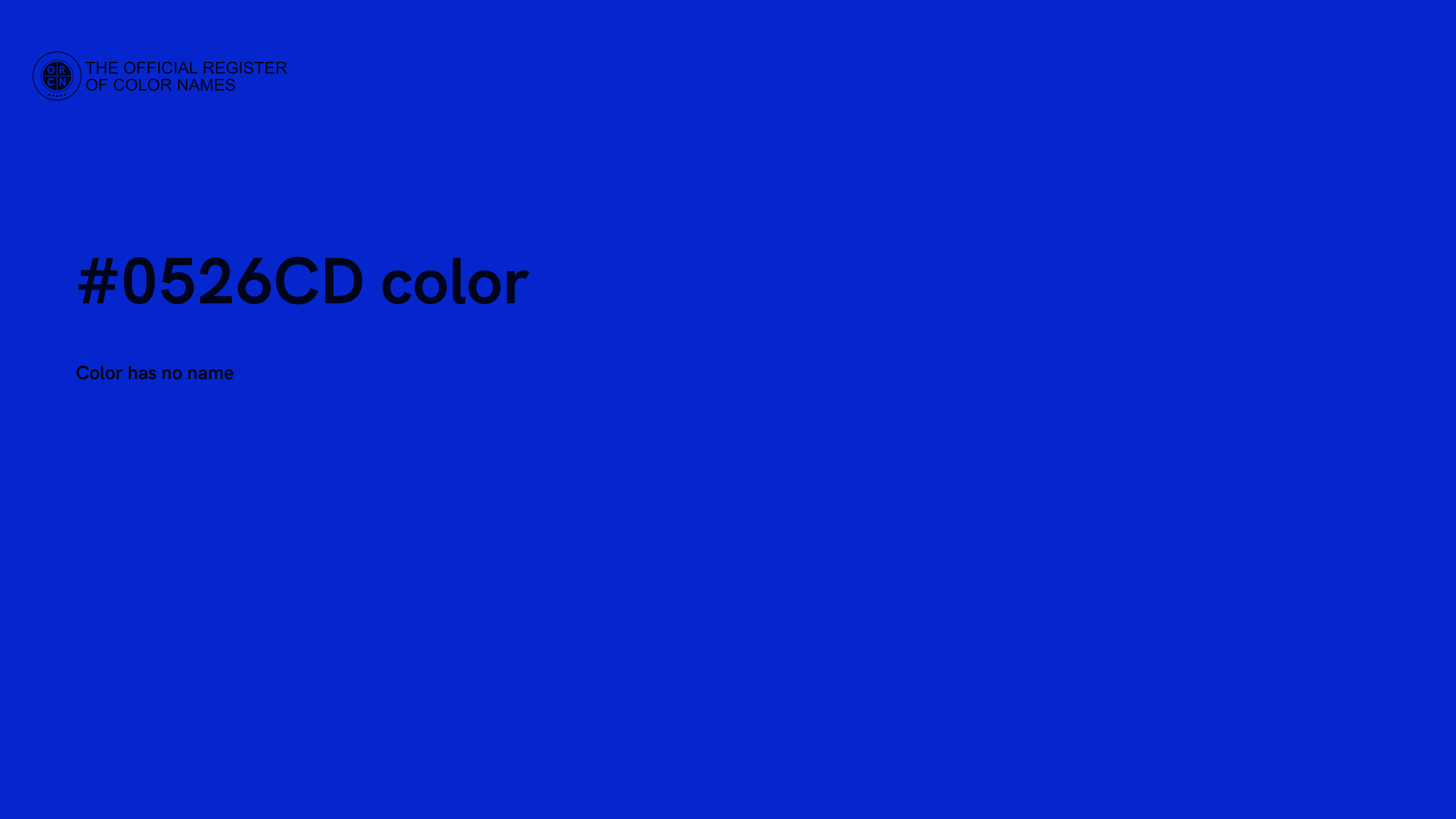 The digital color HEX #0526CD belongs to the Blue Color Family featuring Full Saturation (Saturation Family) and Light (Brightness Family).