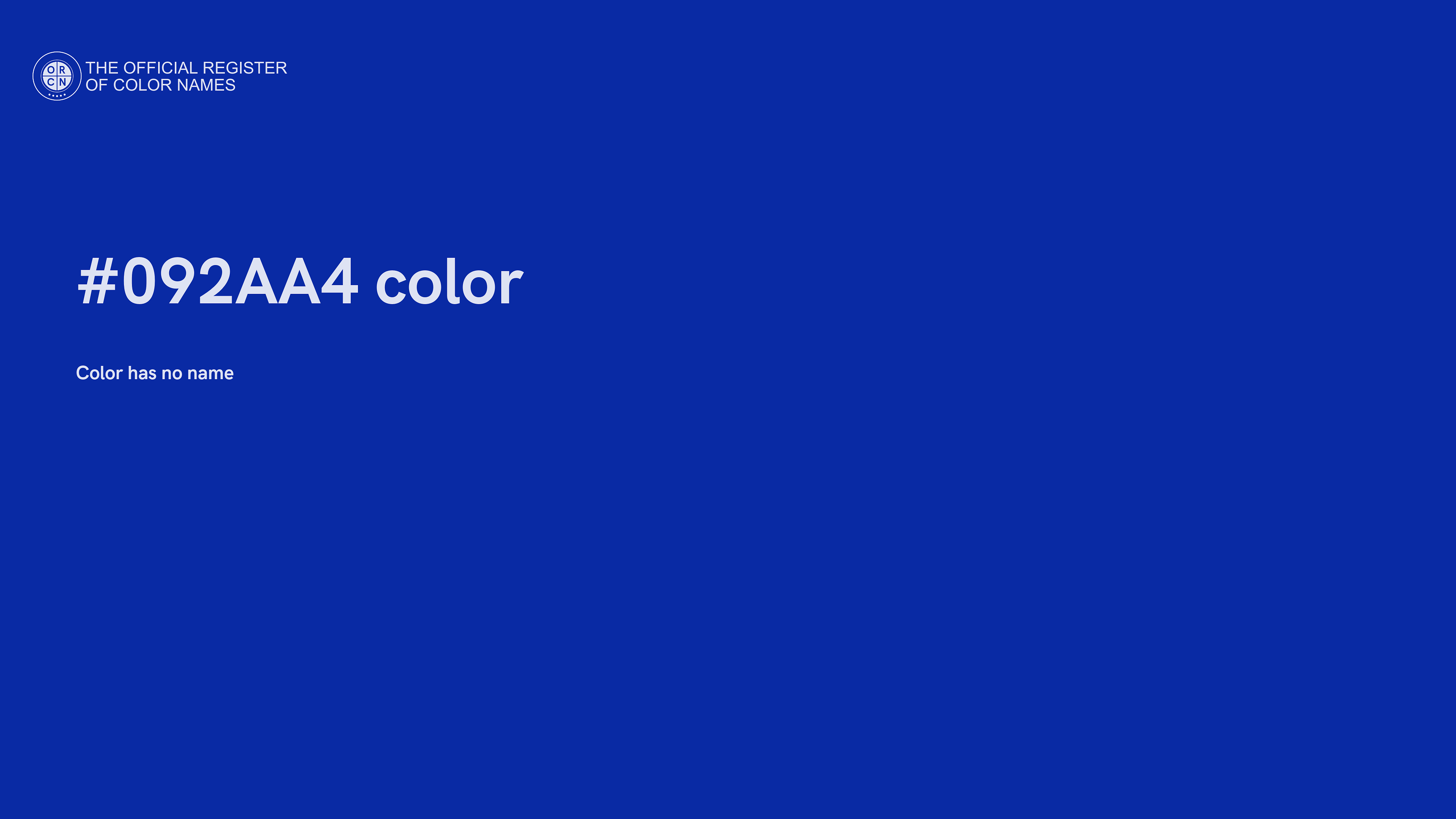The digital color HEX #092AA4 belongs to the Blue Color Family featuring Full Saturation (Saturation Family) and Neutral (Brightness Family).