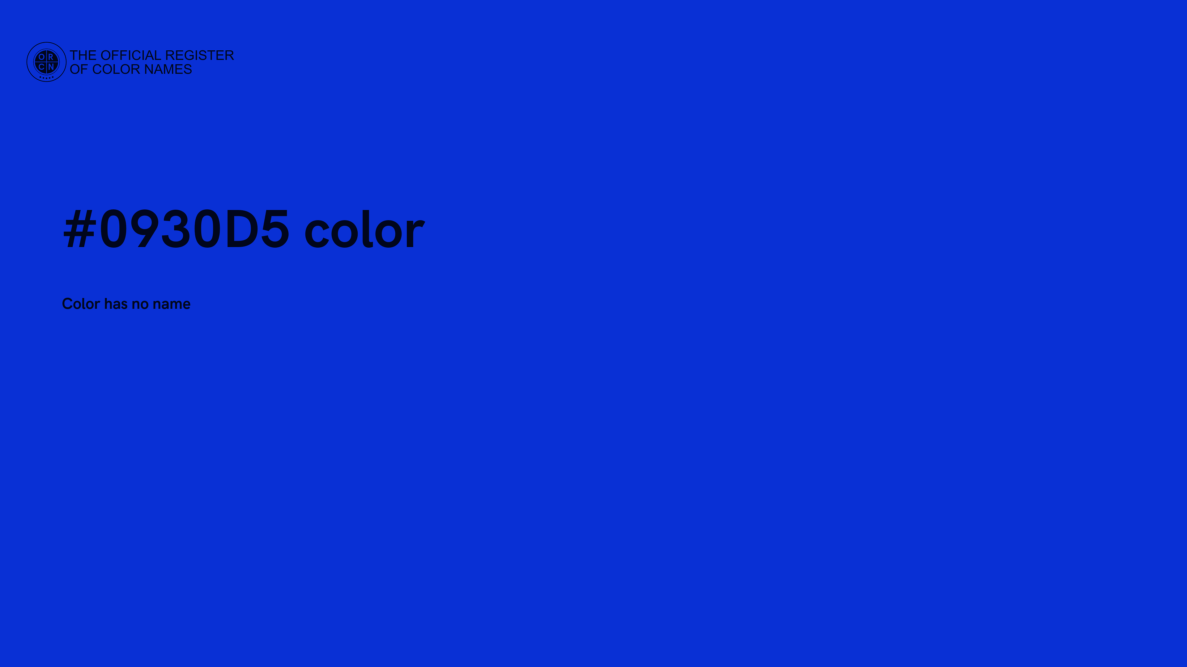 The digital color HEX #0930D5 belongs to the Blue Color Family featuring Full Saturation (Saturation Family) and Light (Brightness Family).