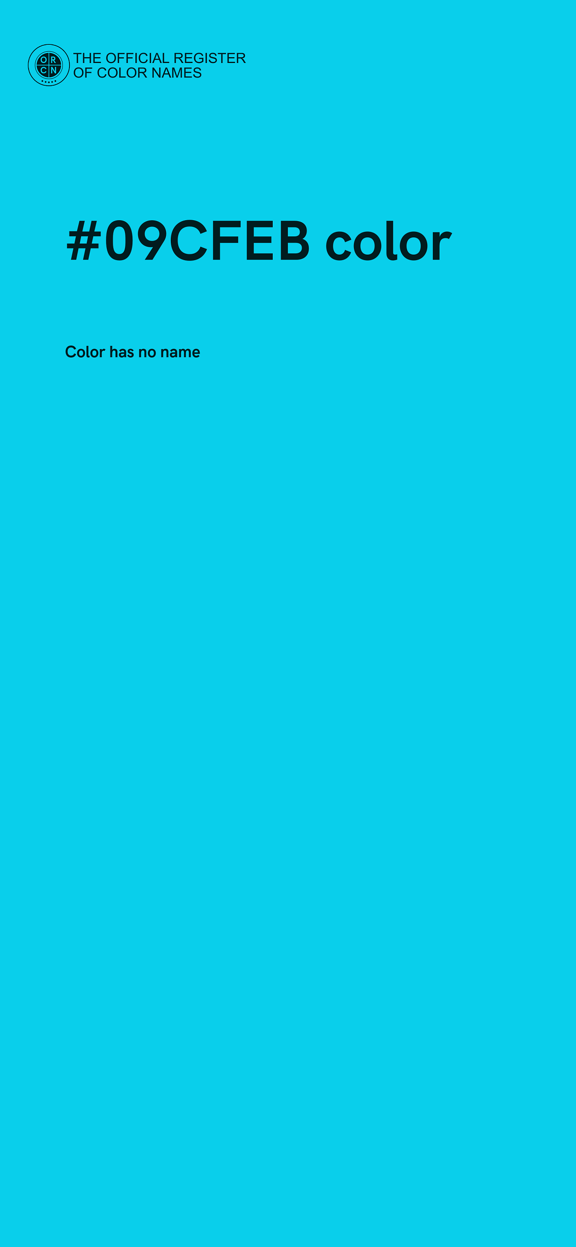 The digital color HEX #09CFEB belongs to the Cyan Color Family featuring Full Saturation (Saturation Family) and Light (Brightness Family).