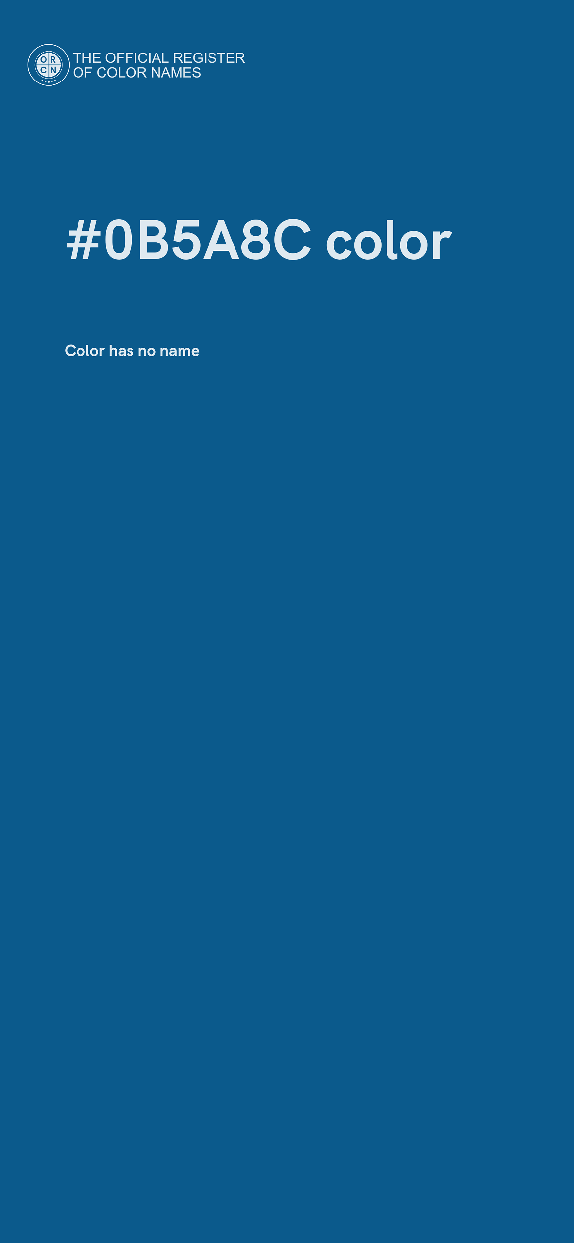 The digital color HEX #0B5A8C belongs to the Azure Color Family featuring Full Saturation (Saturation Family) and Neutral (Brightness Family).