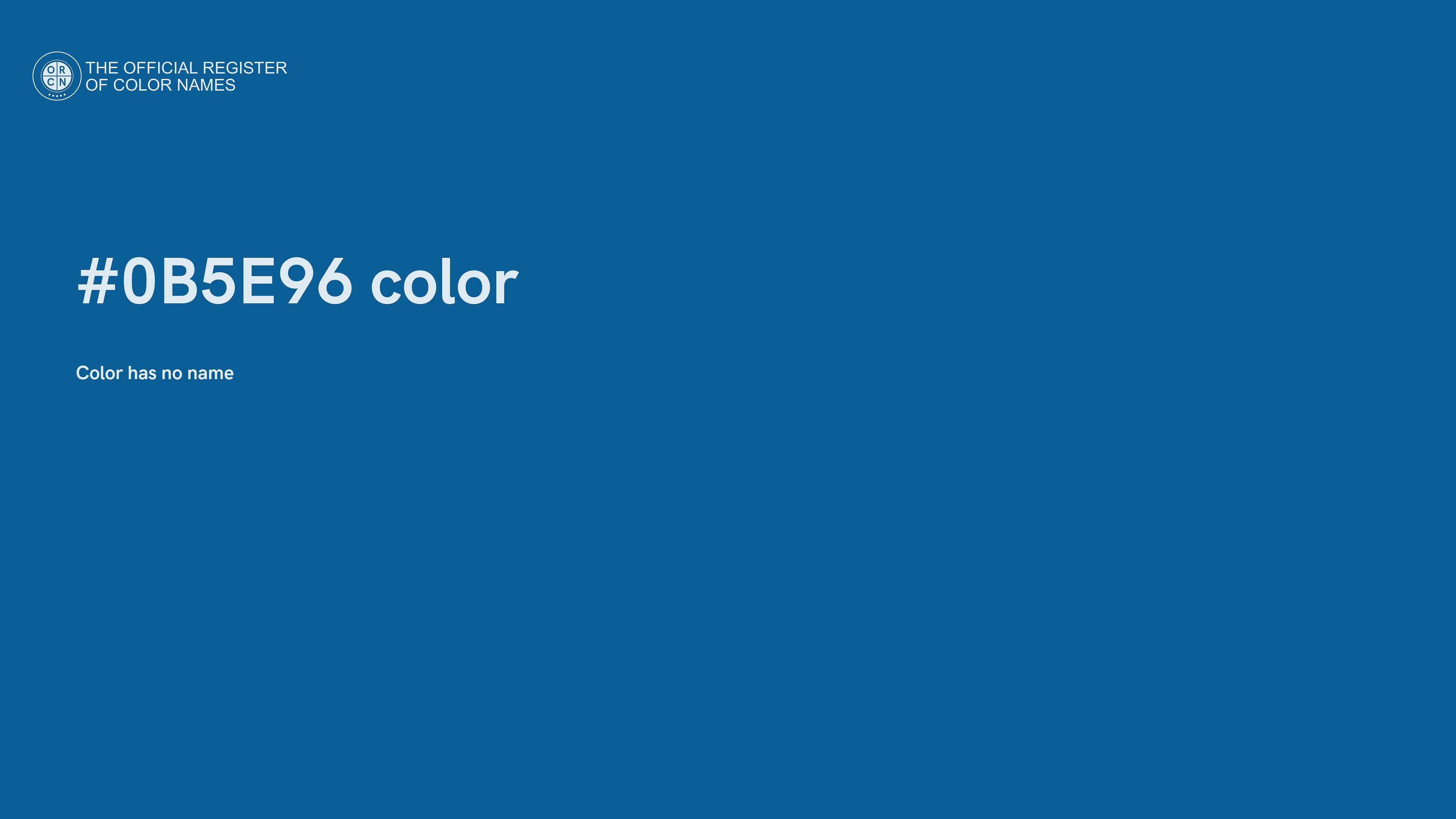 The digital color HEX #0B5E96 belongs to the Azure Color Family featuring Full Saturation (Saturation Family) and Neutral (Brightness Family).