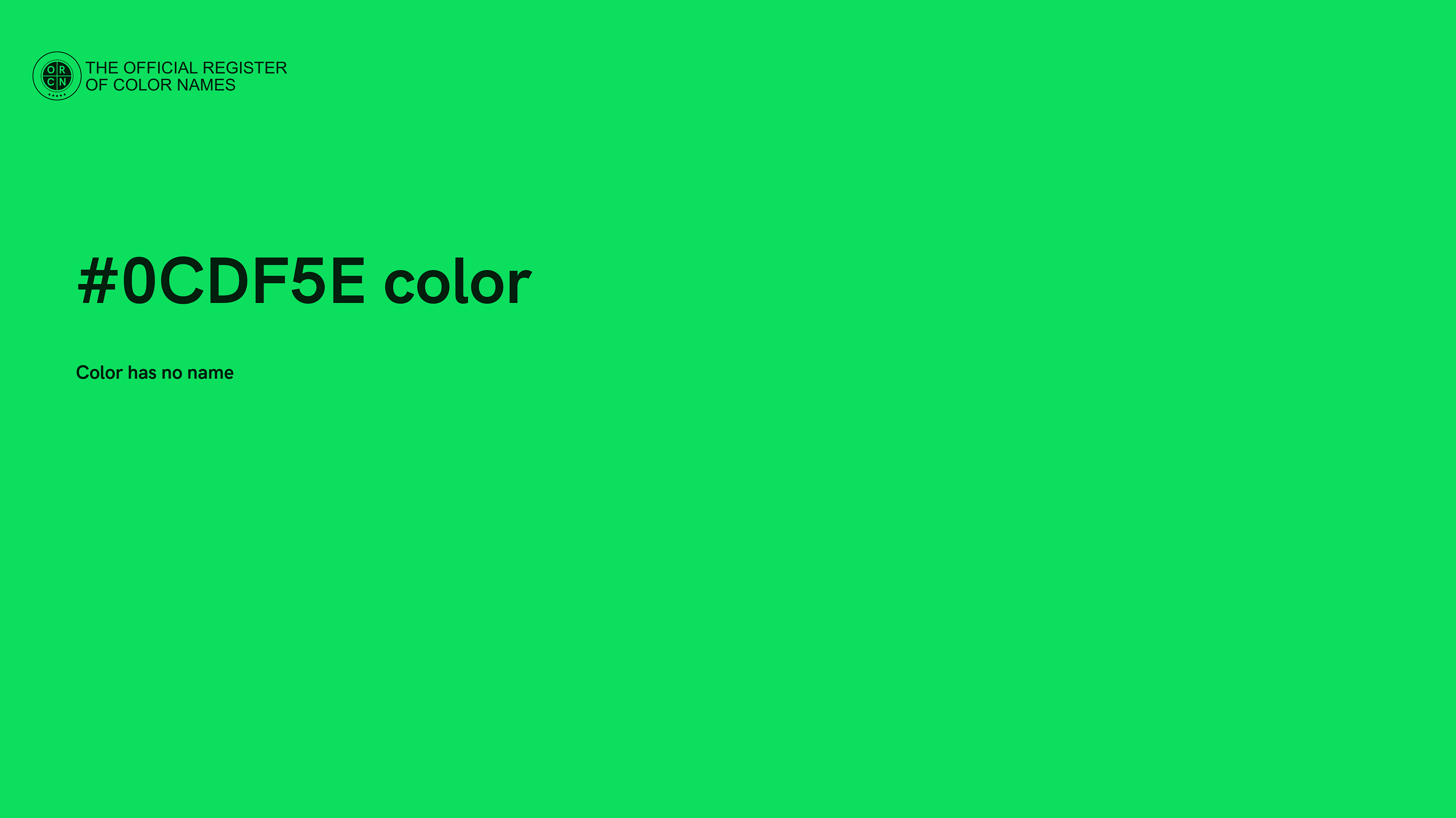 The digital color HEX #0CDF5E belongs to the Spring Green Color Family featuring Full Saturation (Saturation Family) and Light (Brightness Family).