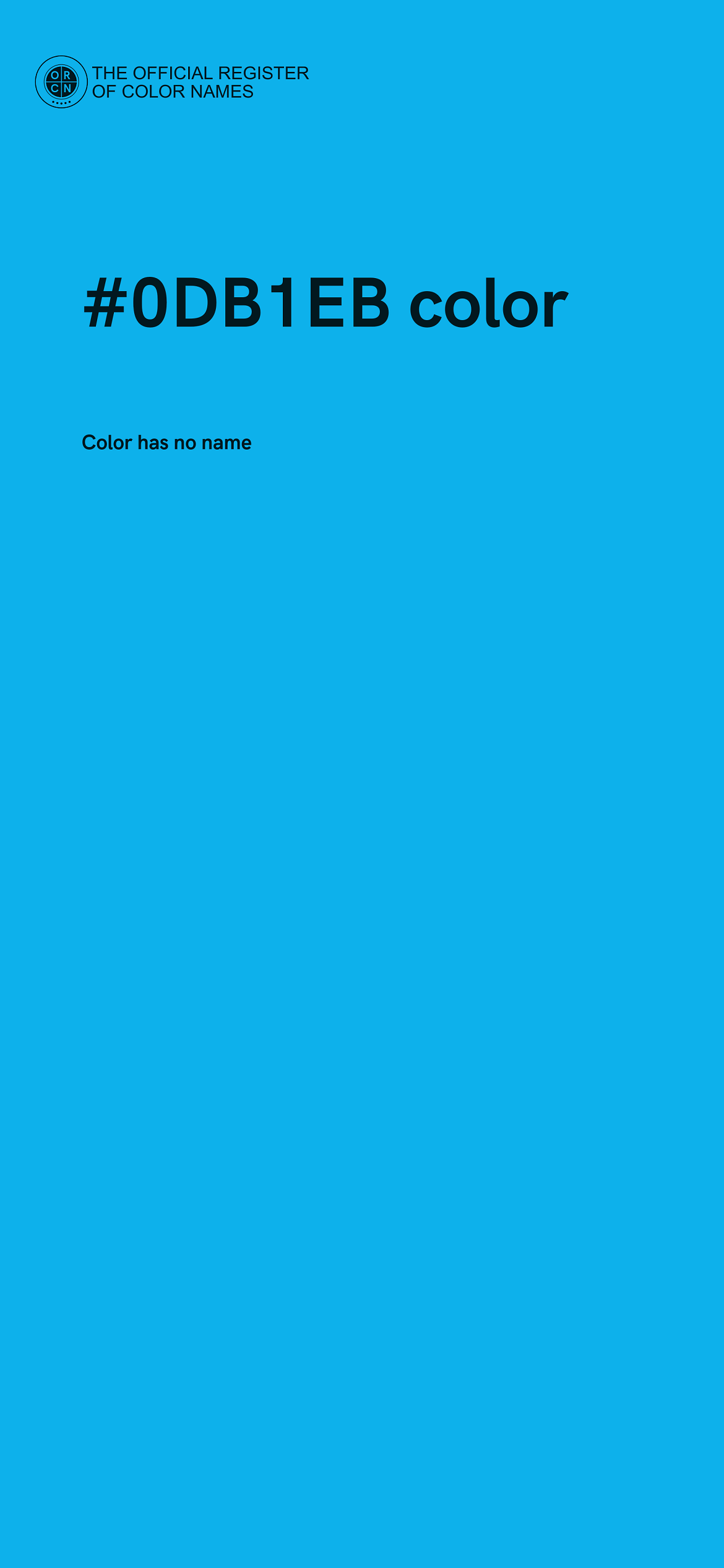 The digital color HEX #0DB1EB belongs to the Azure Color Family featuring Full Saturation (Saturation Family) and Light (Brightness Family).