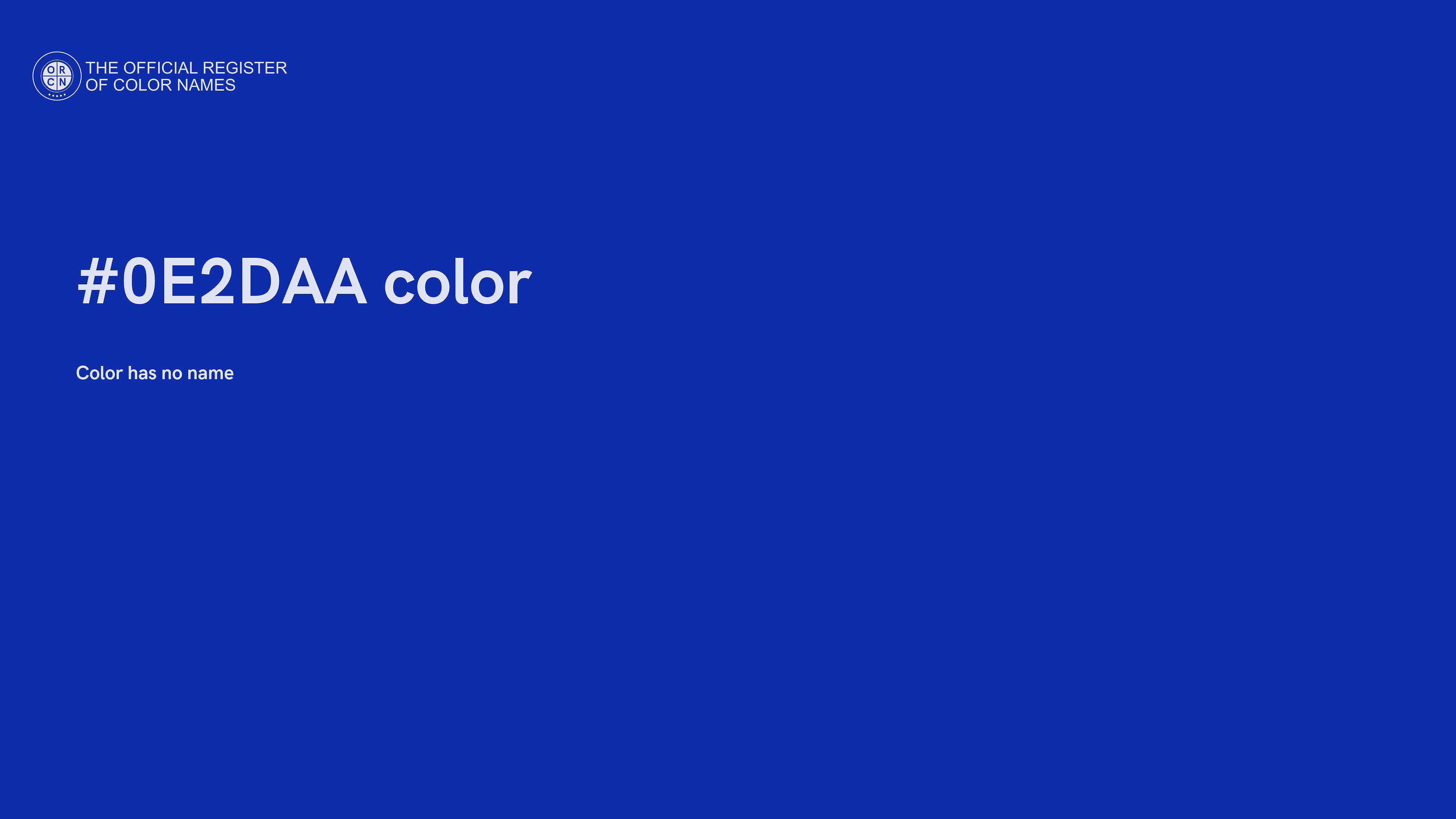 The digital color HEX #0E2DAA belongs to the Blue Color Family featuring Full Saturation (Saturation Family) and Neutral (Brightness Family).