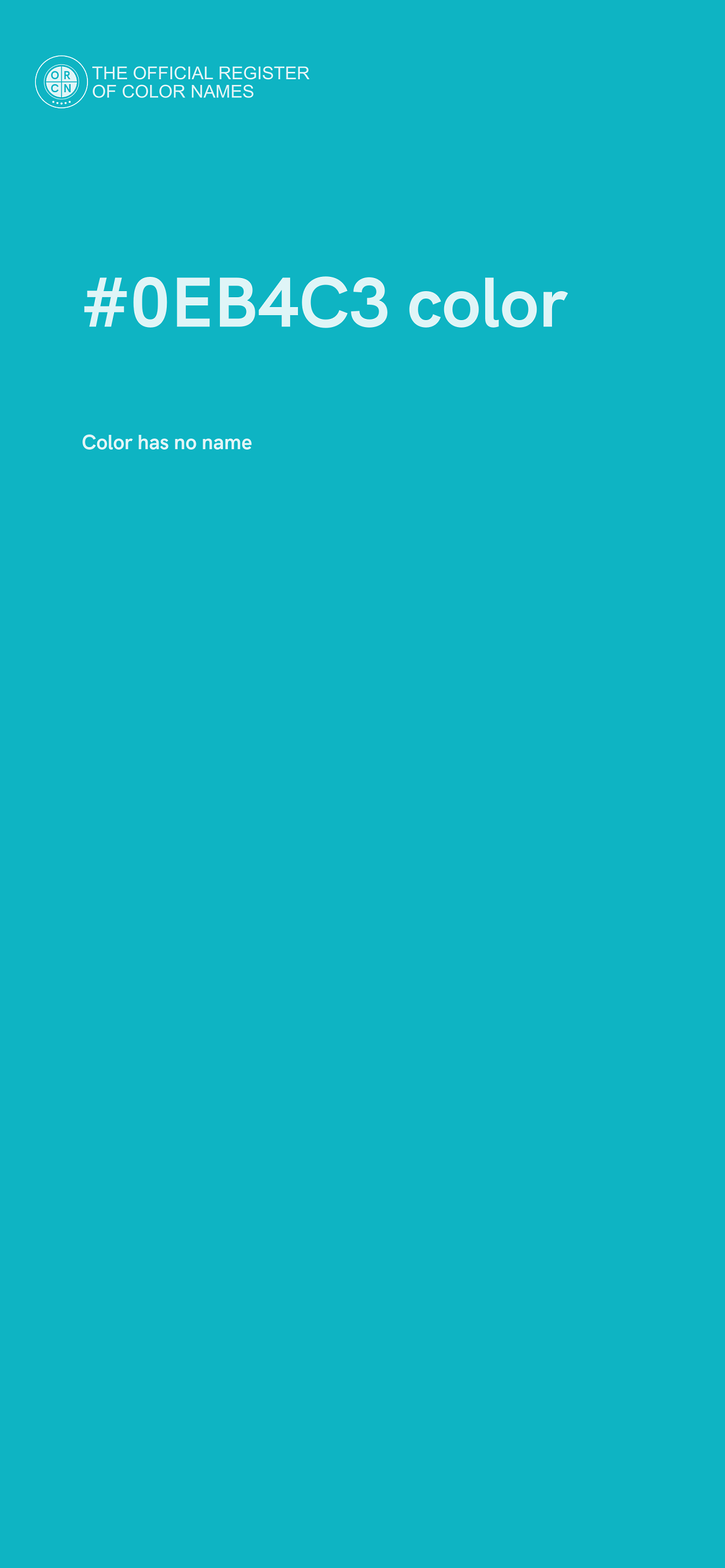 The digital color HEX #0EB4C3 belongs to the Cyan Color Family featuring Full Saturation (Saturation Family) and Light (Brightness Family).