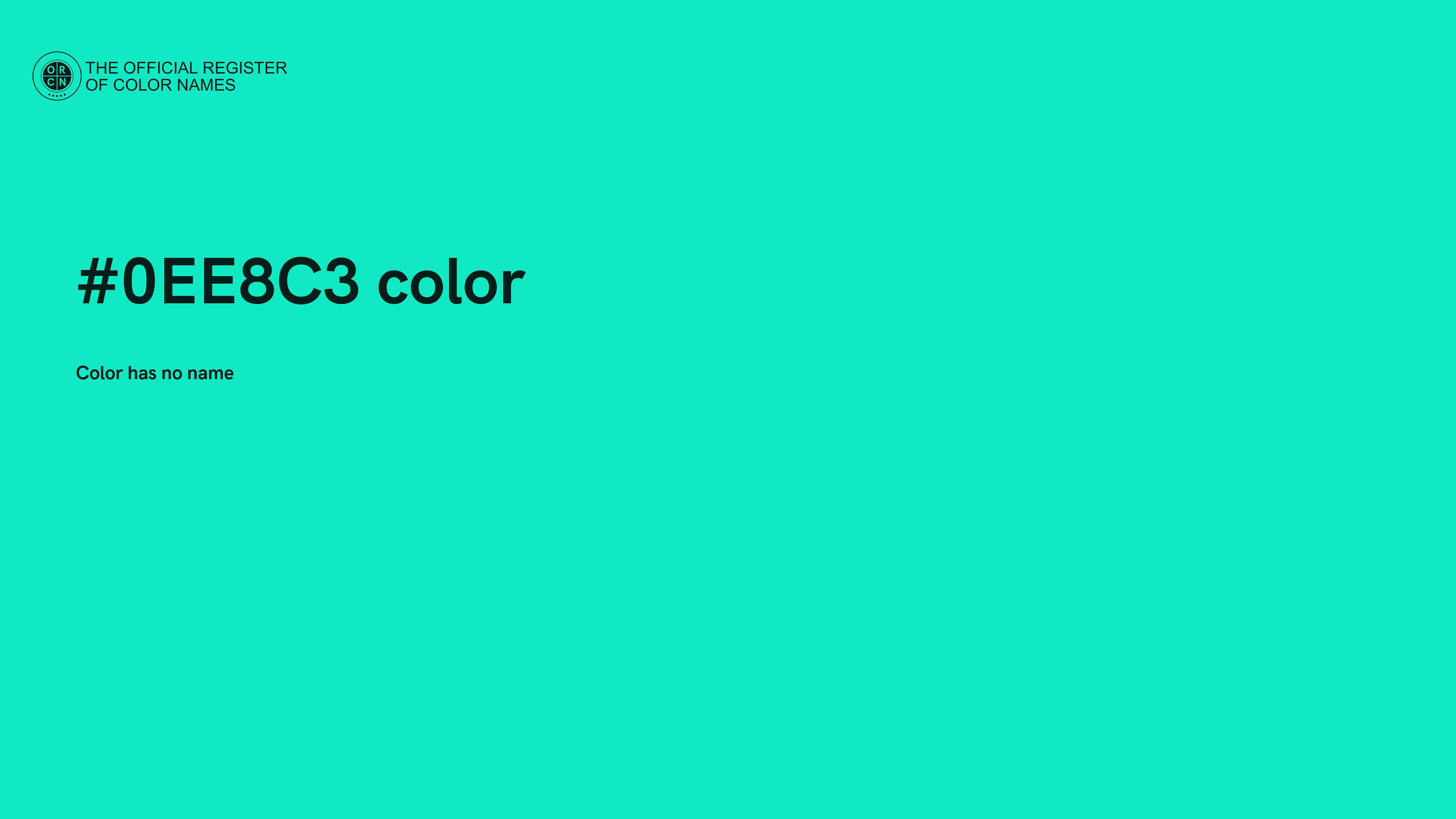 The digital color HEX #0EE8C3 belongs to the Cyan Color Family featuring Full Saturation (Saturation Family) and Light (Brightness Family).