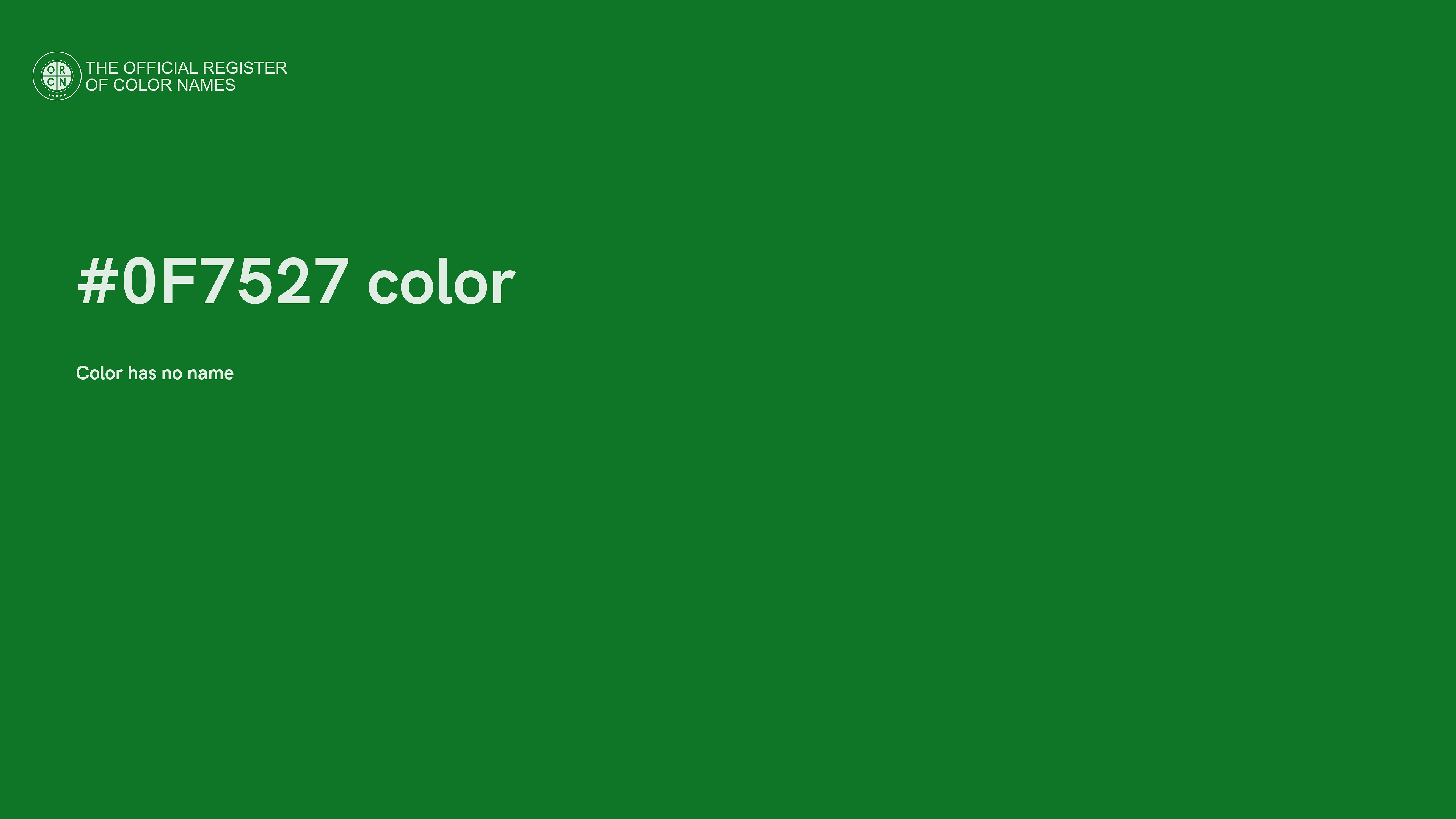 The digital color HEX #0F7527 belongs to the Green Color Family featuring High Saturation (Saturation Family) and Neutral (Brightness Family).