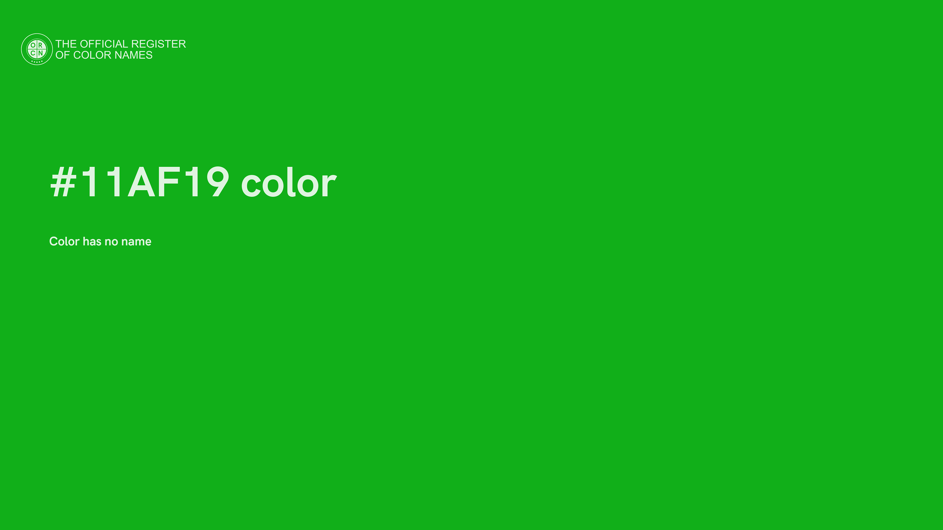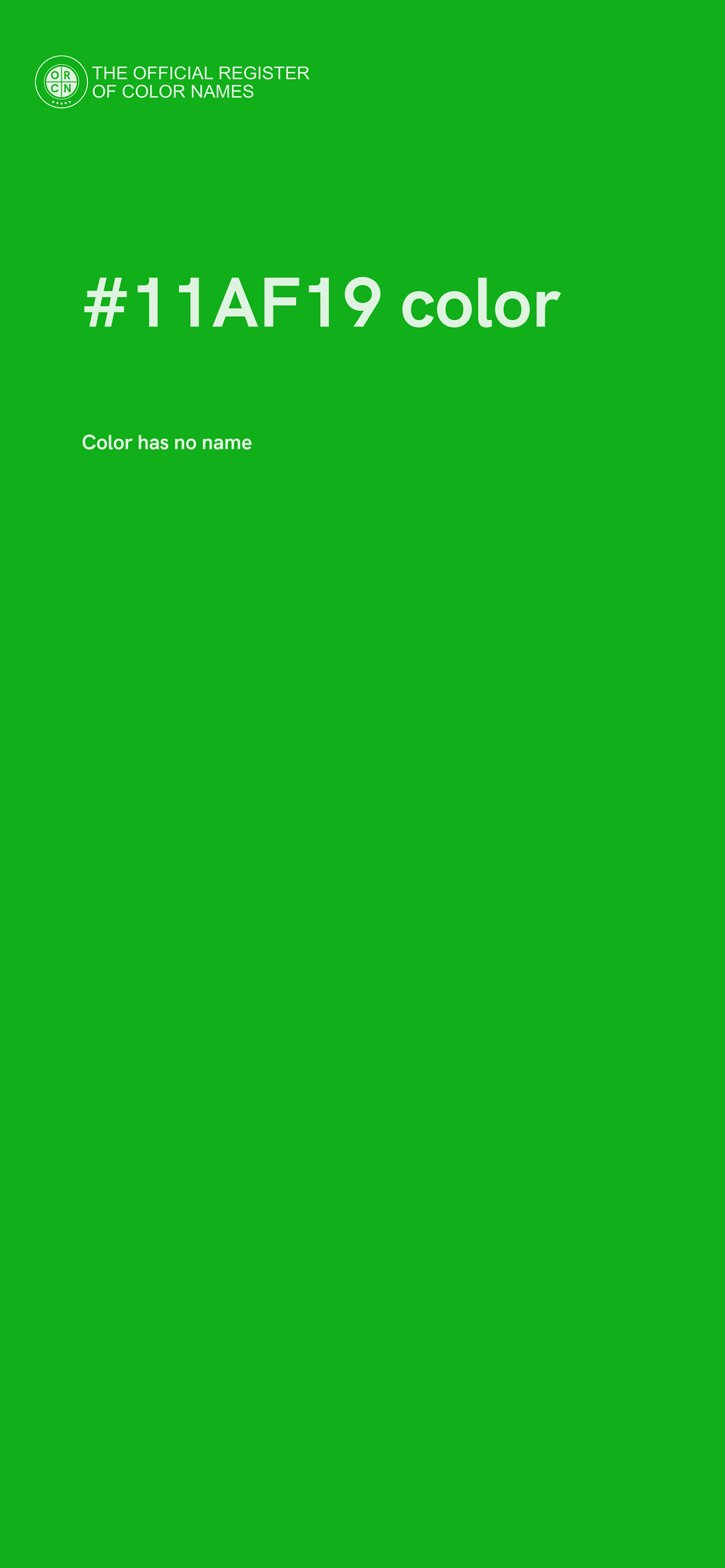 The digital color HEX #11AF19 belongs to the Green Color Family featuring High Saturation (Saturation Family) and Neutral (Brightness Family).