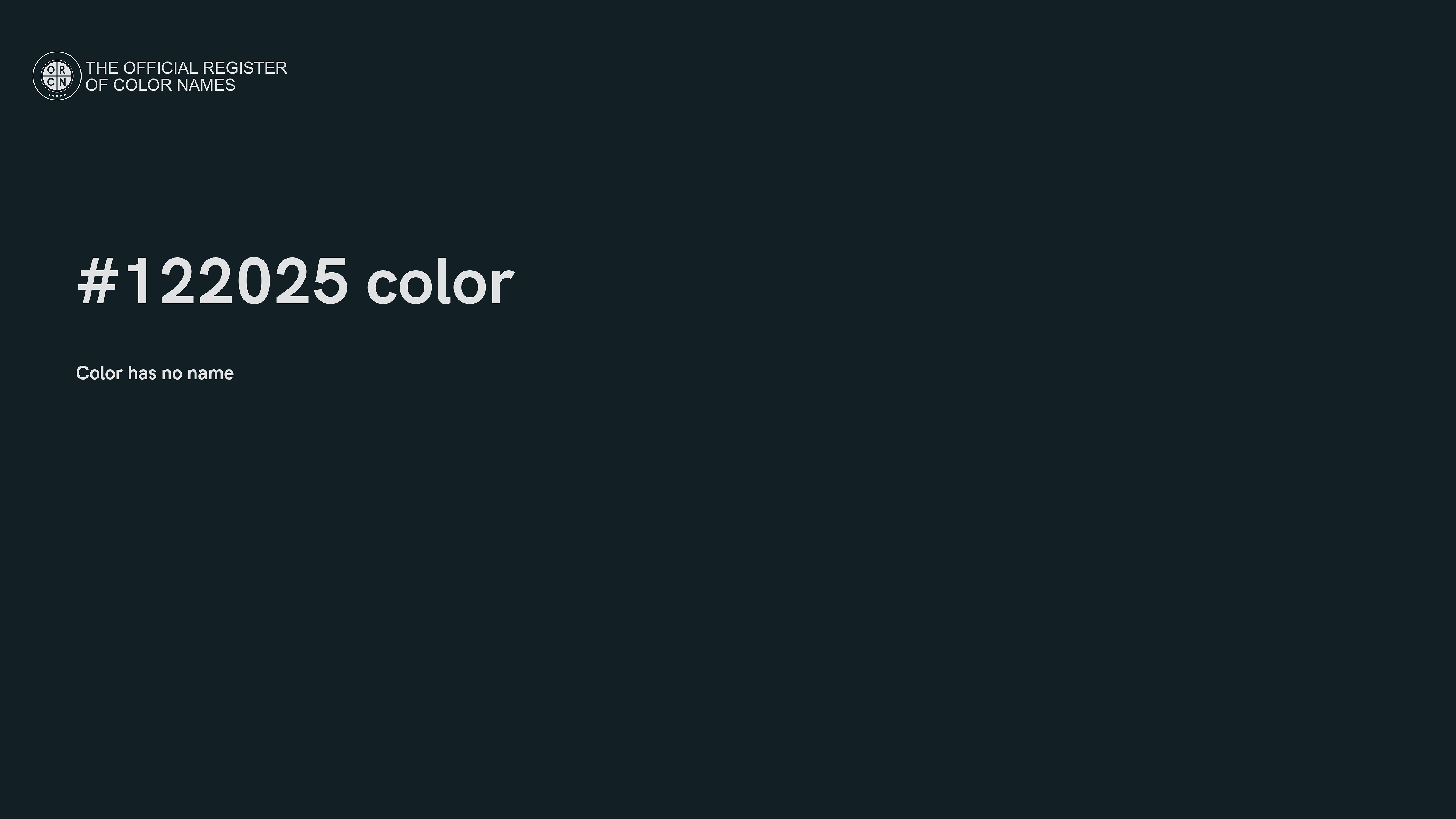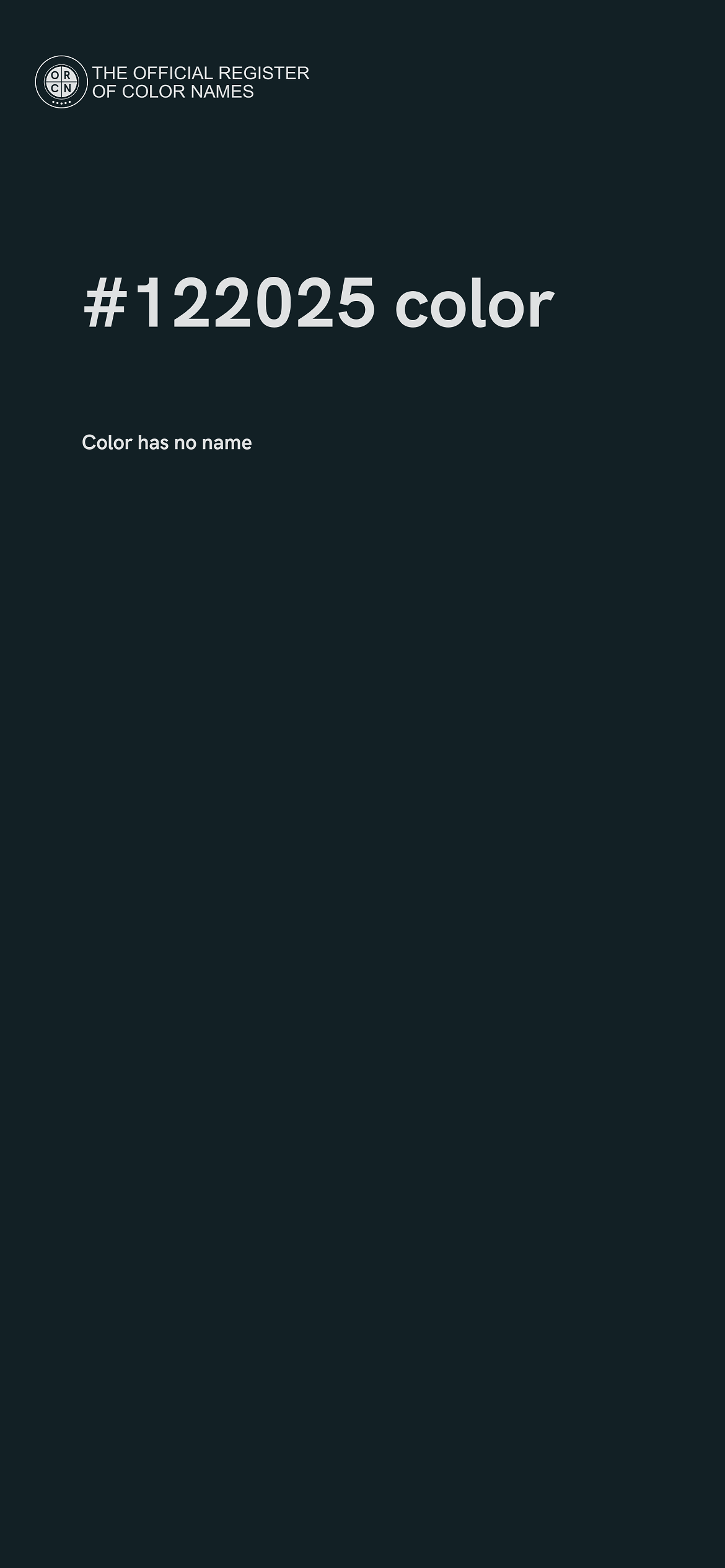 The digital color HEX #122025 belongs to the Azure Color Family featuring Mild Saturation (Saturation Family) and Dark (Brightness Family).