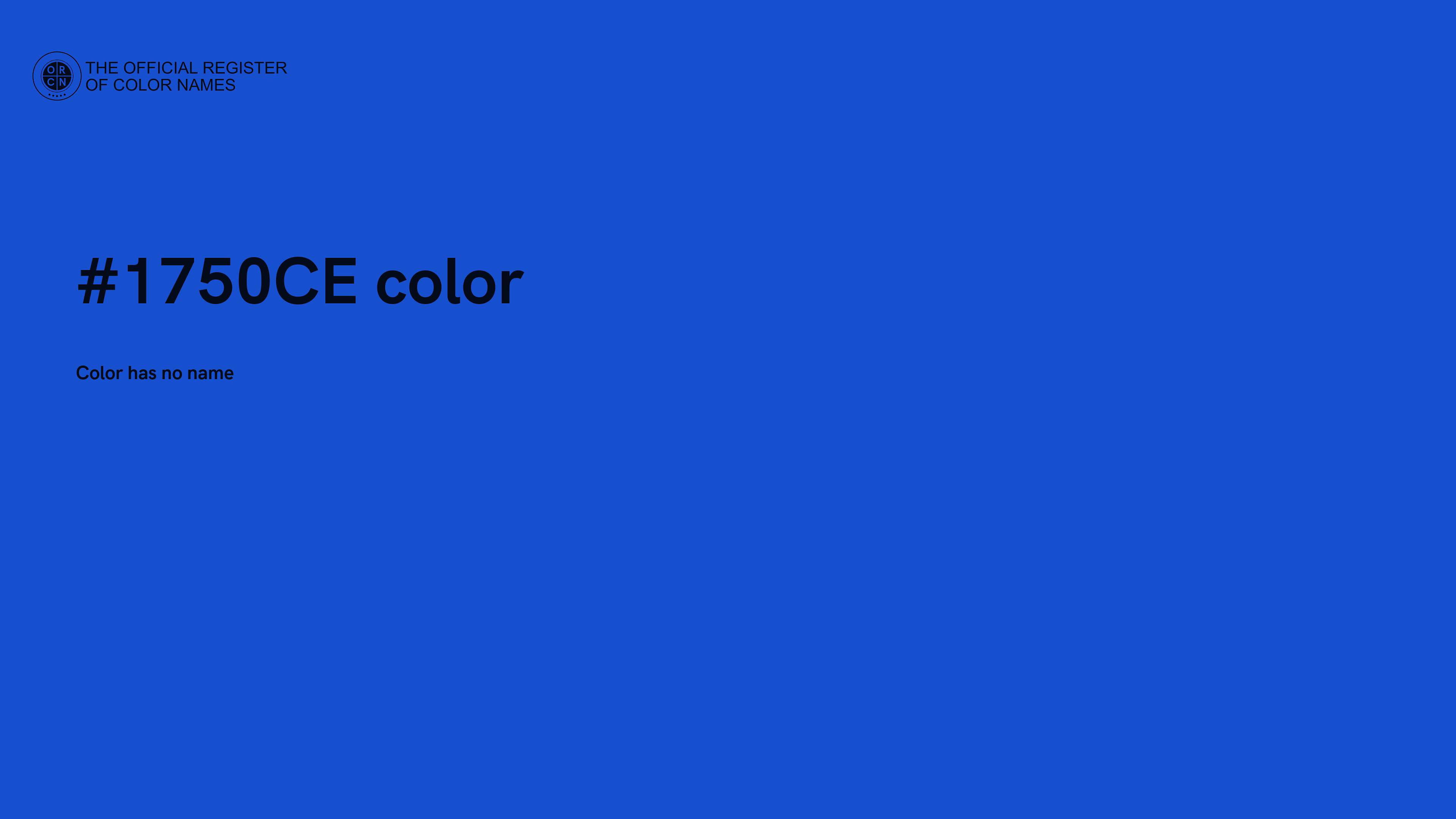 The digital color HEX #1750CE belongs to the Azure Color Family featuring High Saturation (Saturation Family) and Light (Brightness Family).