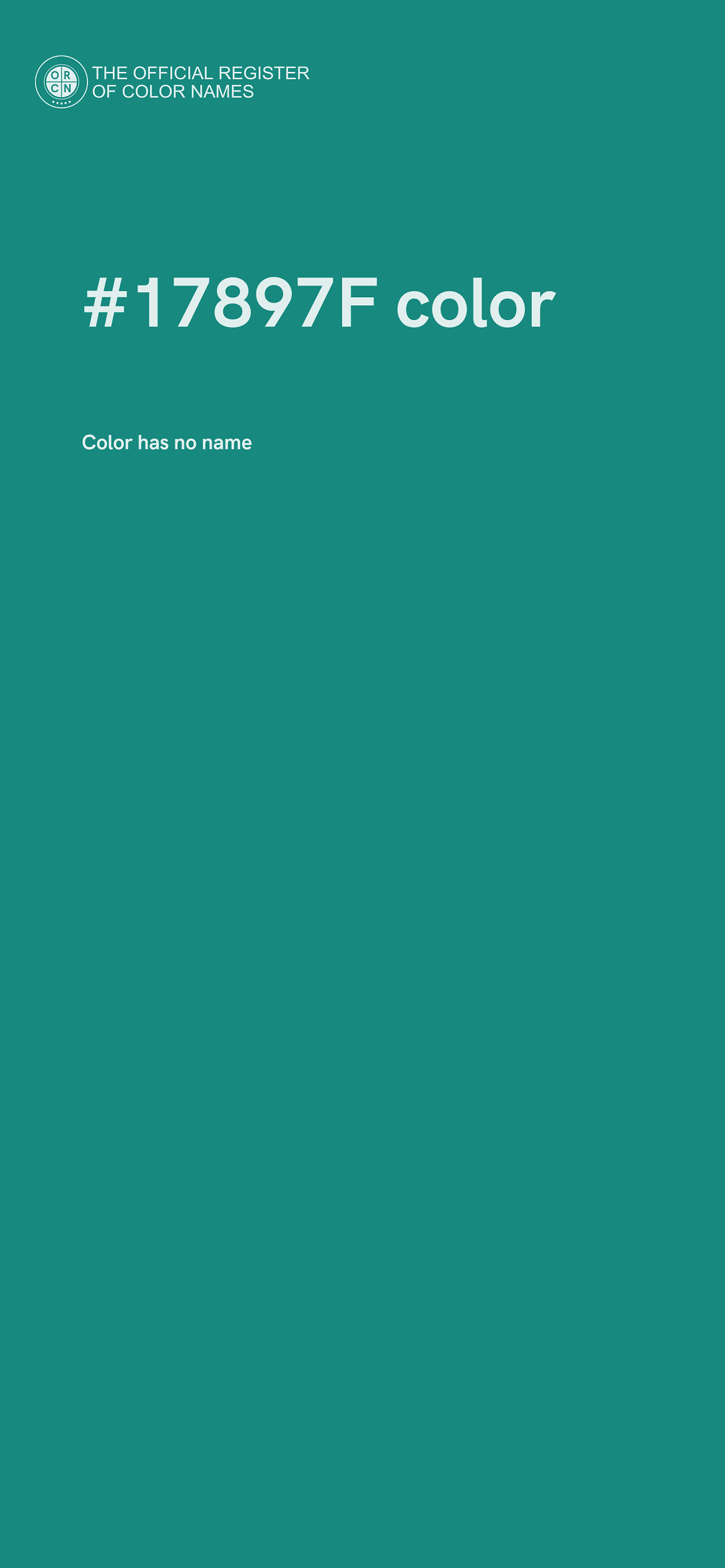 The digital color HEX #17897F belongs to the Cyan Color Family featuring High Saturation (Saturation Family) and Neutral (Brightness Family).
