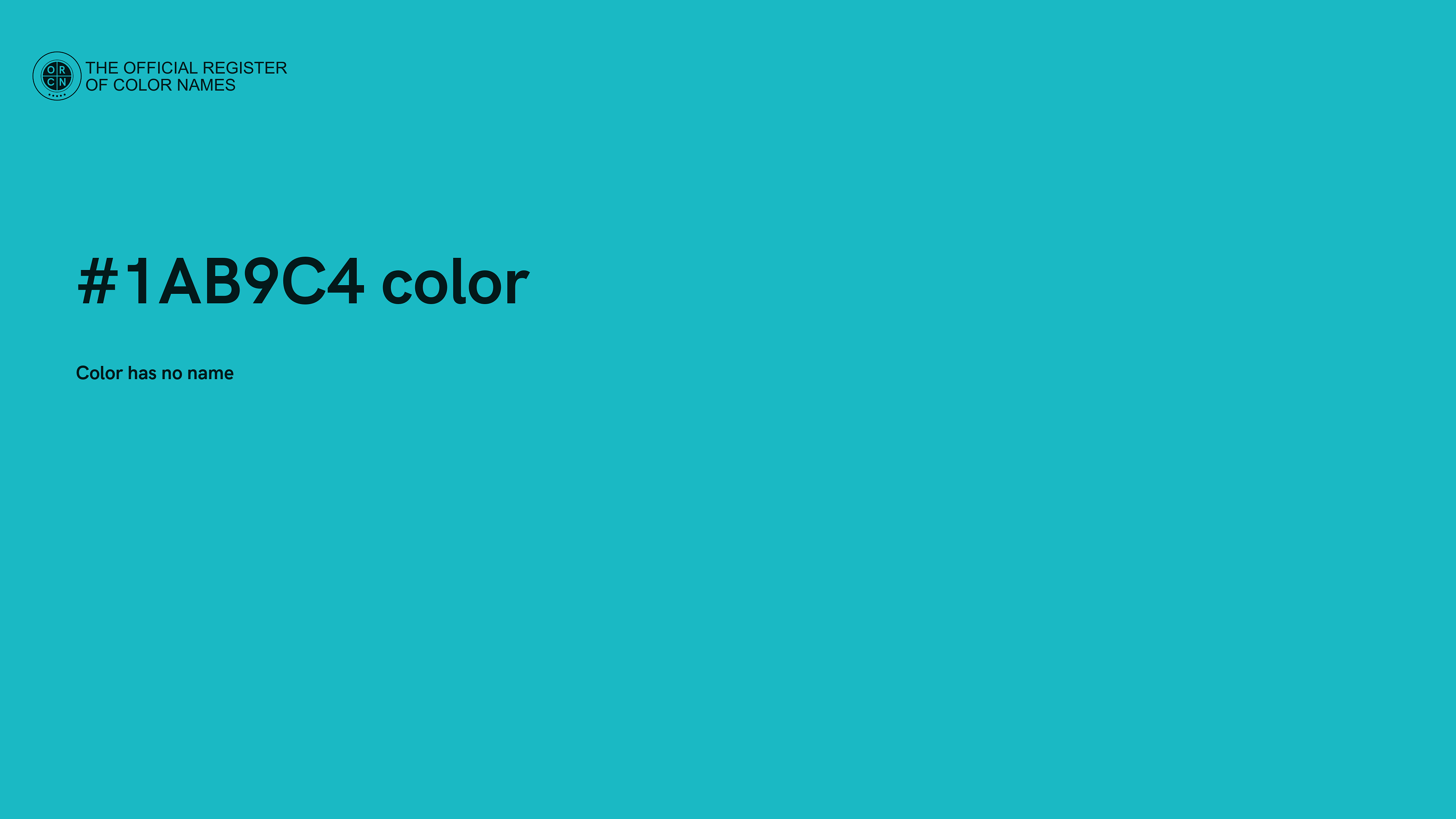 For printing in non digital world, #1AB9C4 is represented in CMYK as 67 Cyan, 4 Magenta, 0 Yellow, and 23 Black (Key) (C:67 M:4 Y:0 K:23).