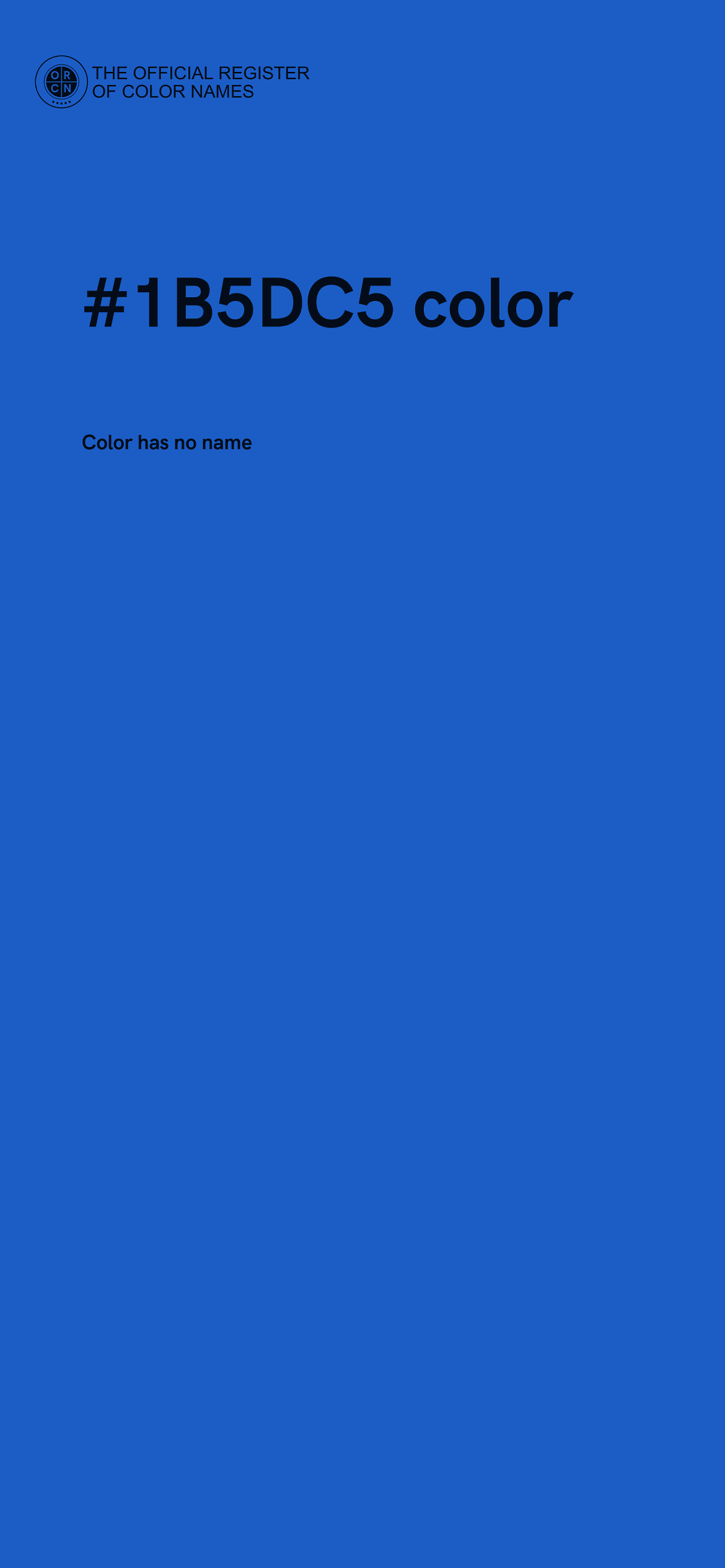 The digital color HEX #1B5DC5 belongs to the Azure Color Family featuring High Saturation (Saturation Family) and Light (Brightness Family).