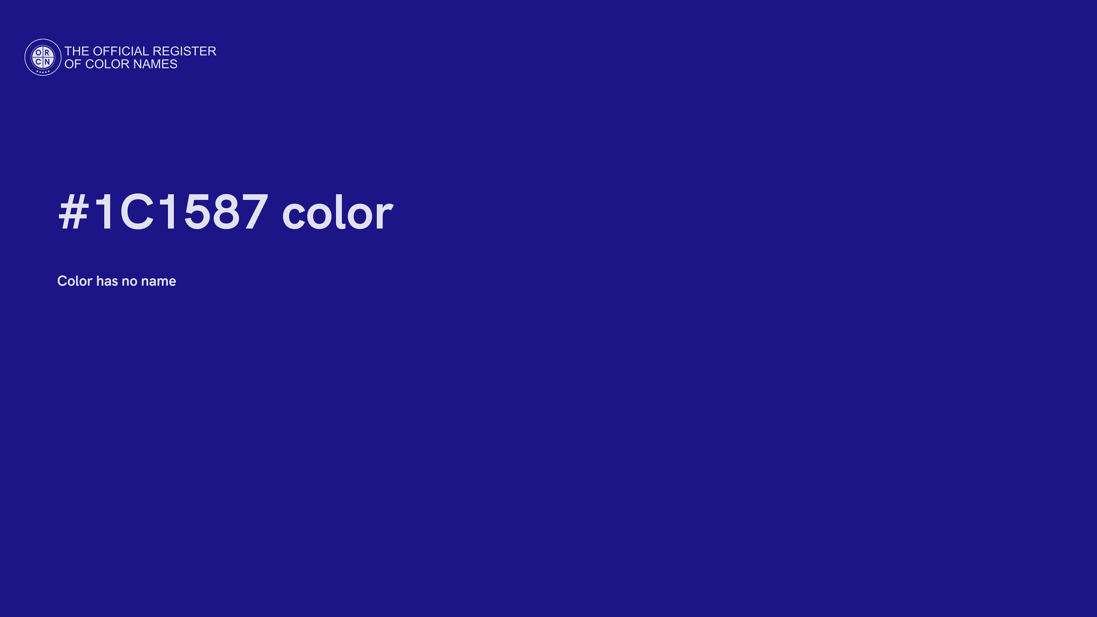 The digital color HEX #1C1587 belongs to the Blue Color Family featuring High Saturation (Saturation Family) and Neutral (Brightness Family).