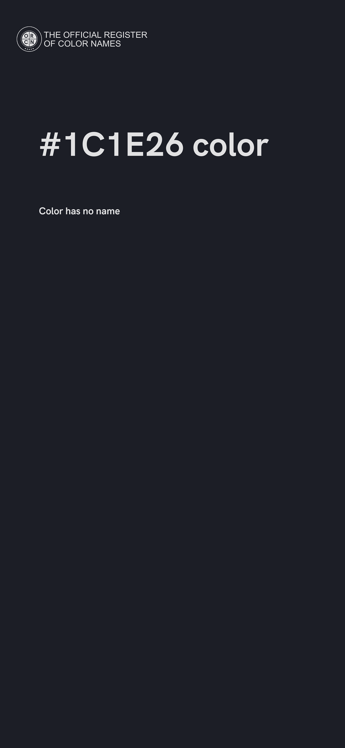 The digital color HEX #1C1E26 belongs to the Blue Color Family featuring Low Saturation (Saturation Family) and Dark (Brightness Family).