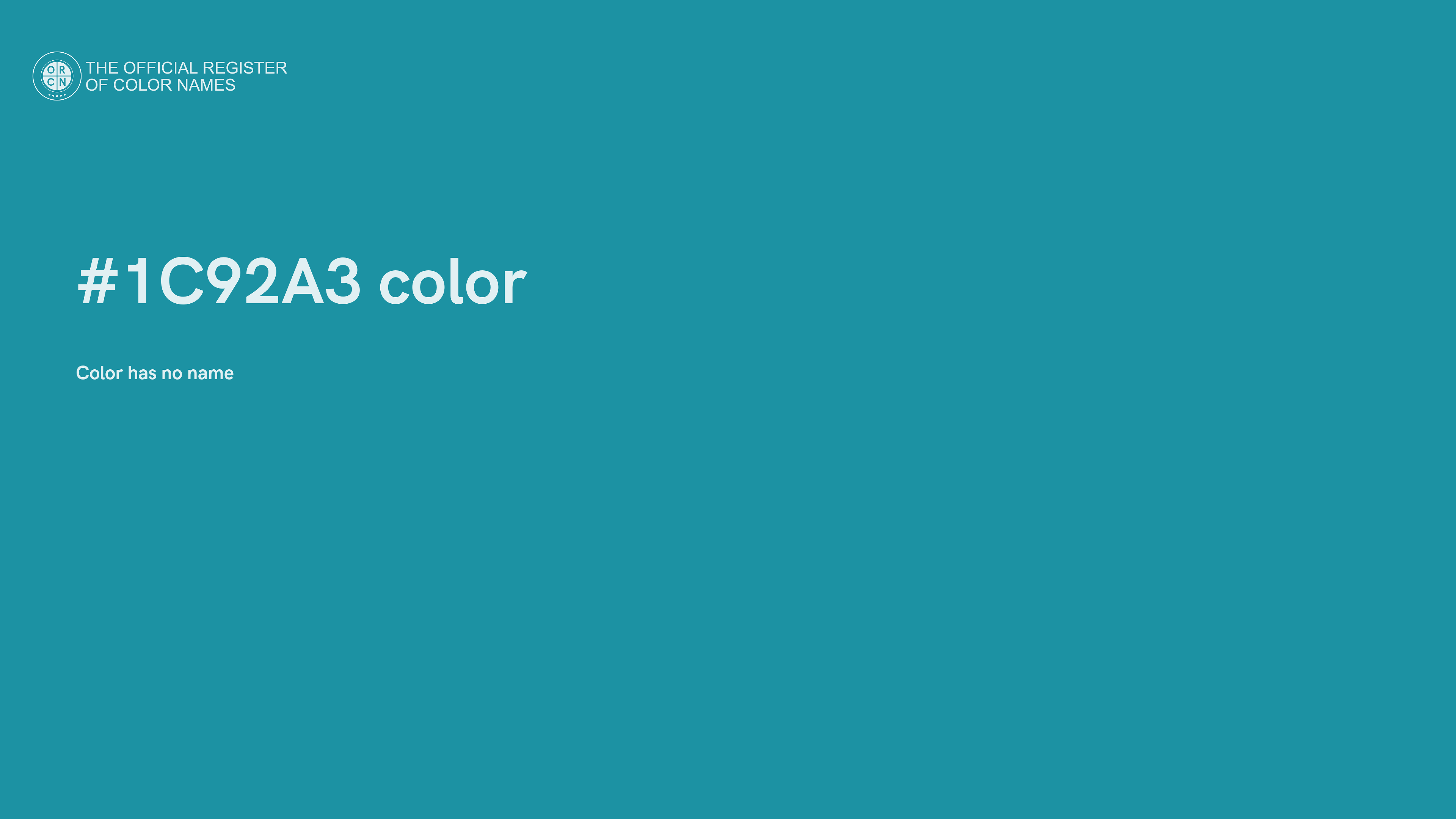 The digital color HEX #1C92A3 belongs to the Cyan Color Family featuring High Saturation (Saturation Family) and Neutral (Brightness Family).