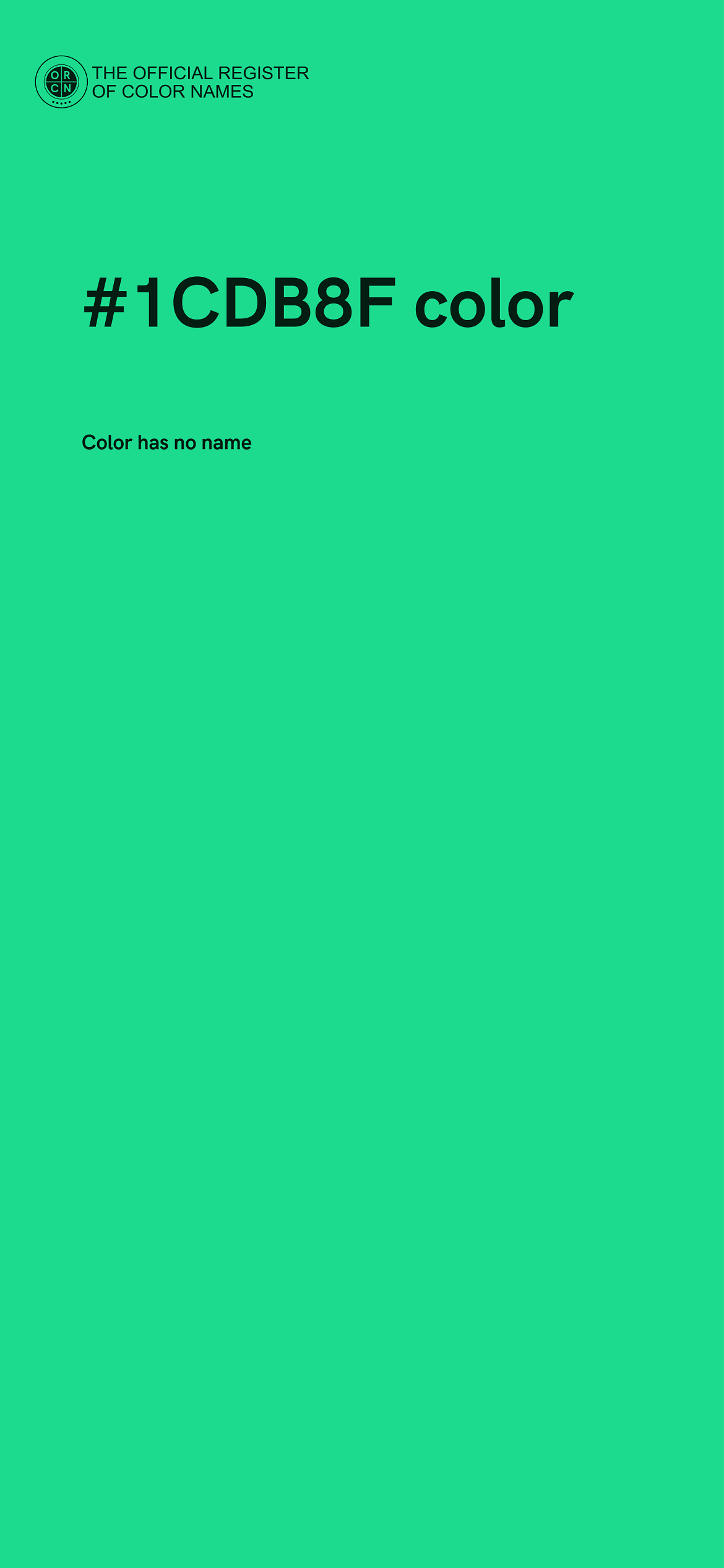 The digital color HEX #1CDB8F belongs to the Spring Green Color Family featuring High Saturation (Saturation Family) and Light (Brightness Family).