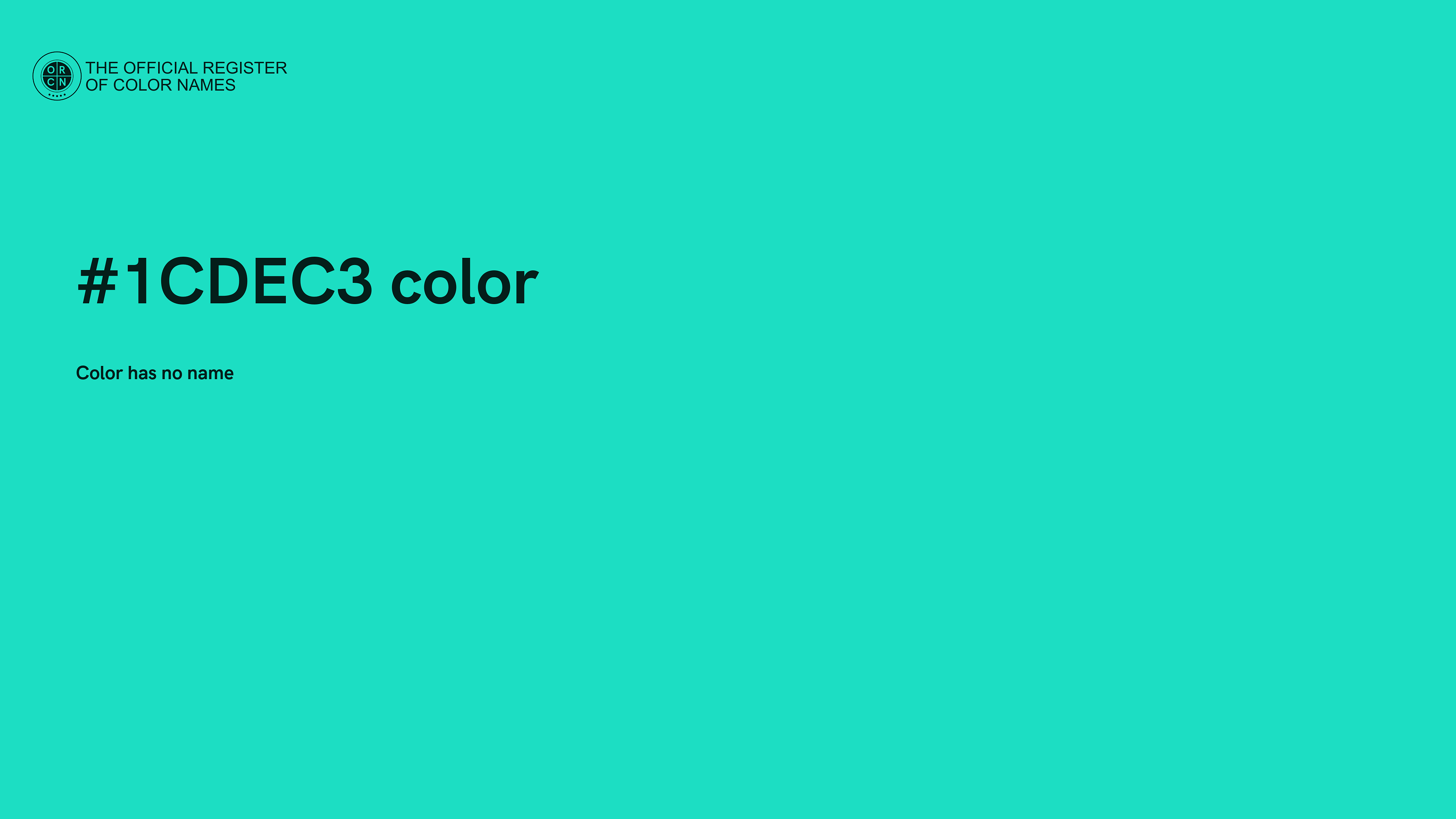 The digital color HEX #1CDEC3 belongs to the Cyan Color Family featuring High Saturation (Saturation Family) and Light (Brightness Family).