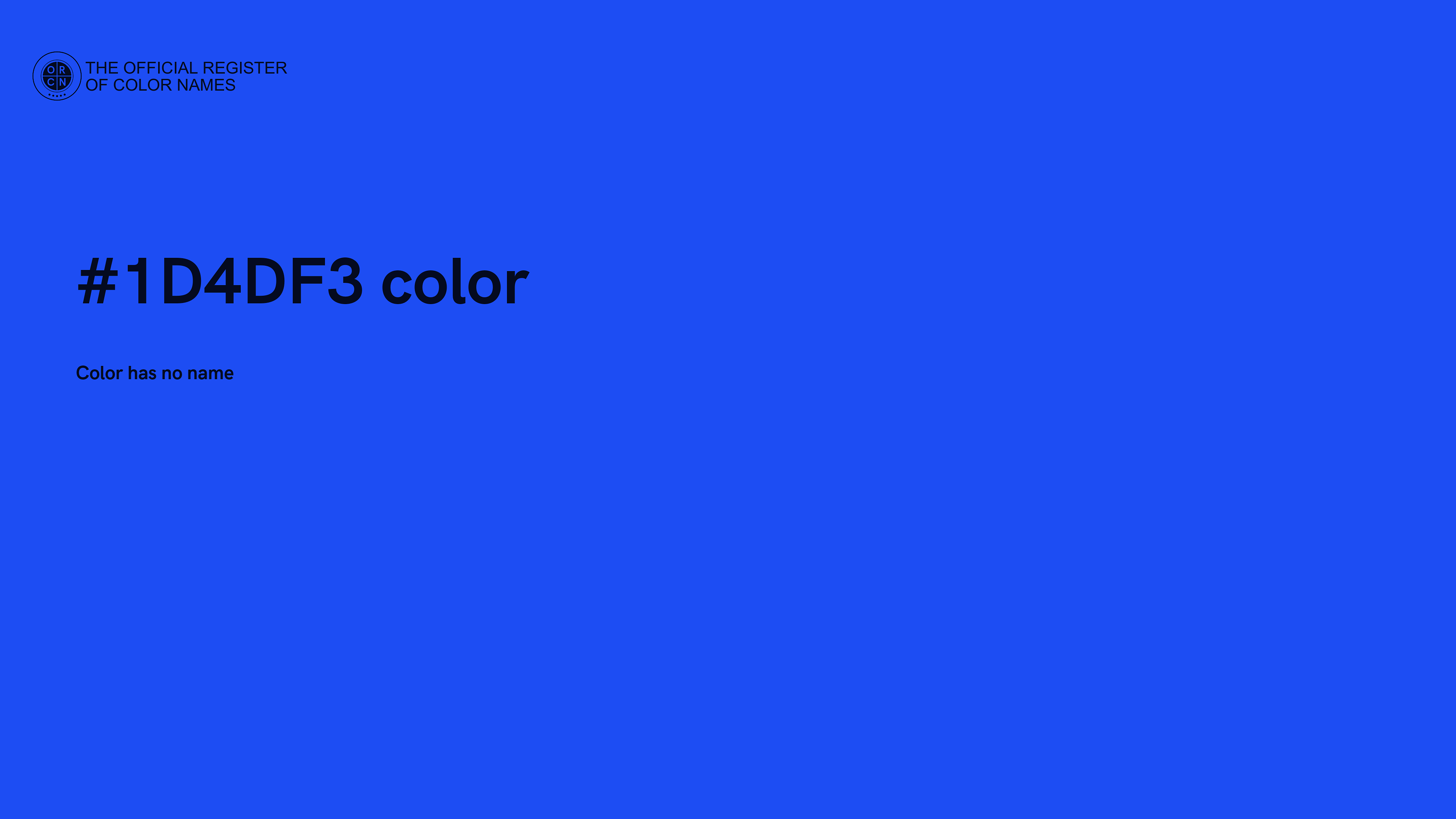 For printing in non digital world, #1D4DF3 is represented in CMYK as 84 Cyan, 65 Magenta, 0 Yellow, and 5 Black (Key) (C:84 M:65 Y:0 K:5).