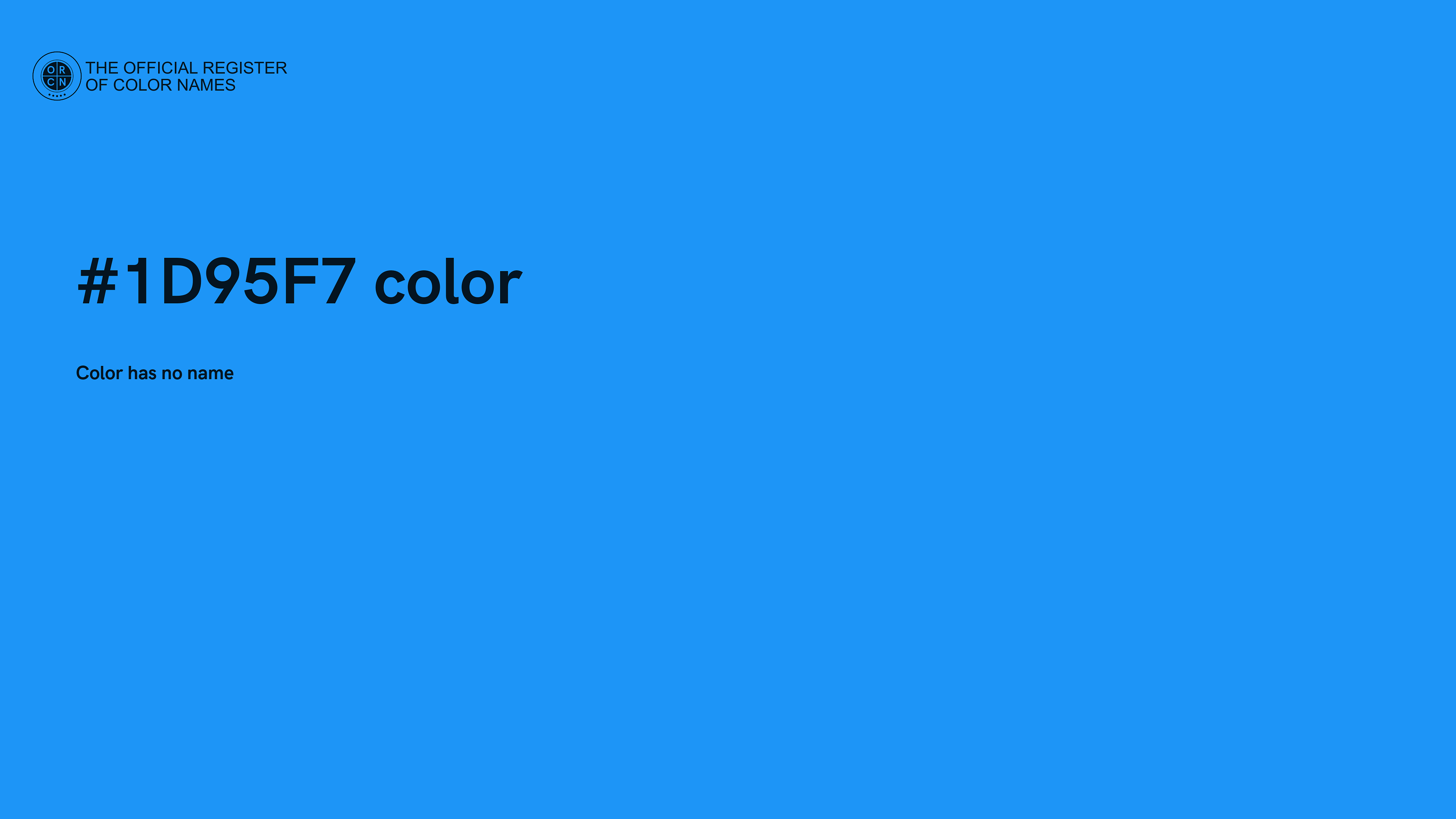 The digital color HEX #1D95F7 belongs to the Azure Color Family featuring Full Saturation (Saturation Family) and Light (Brightness Family).
