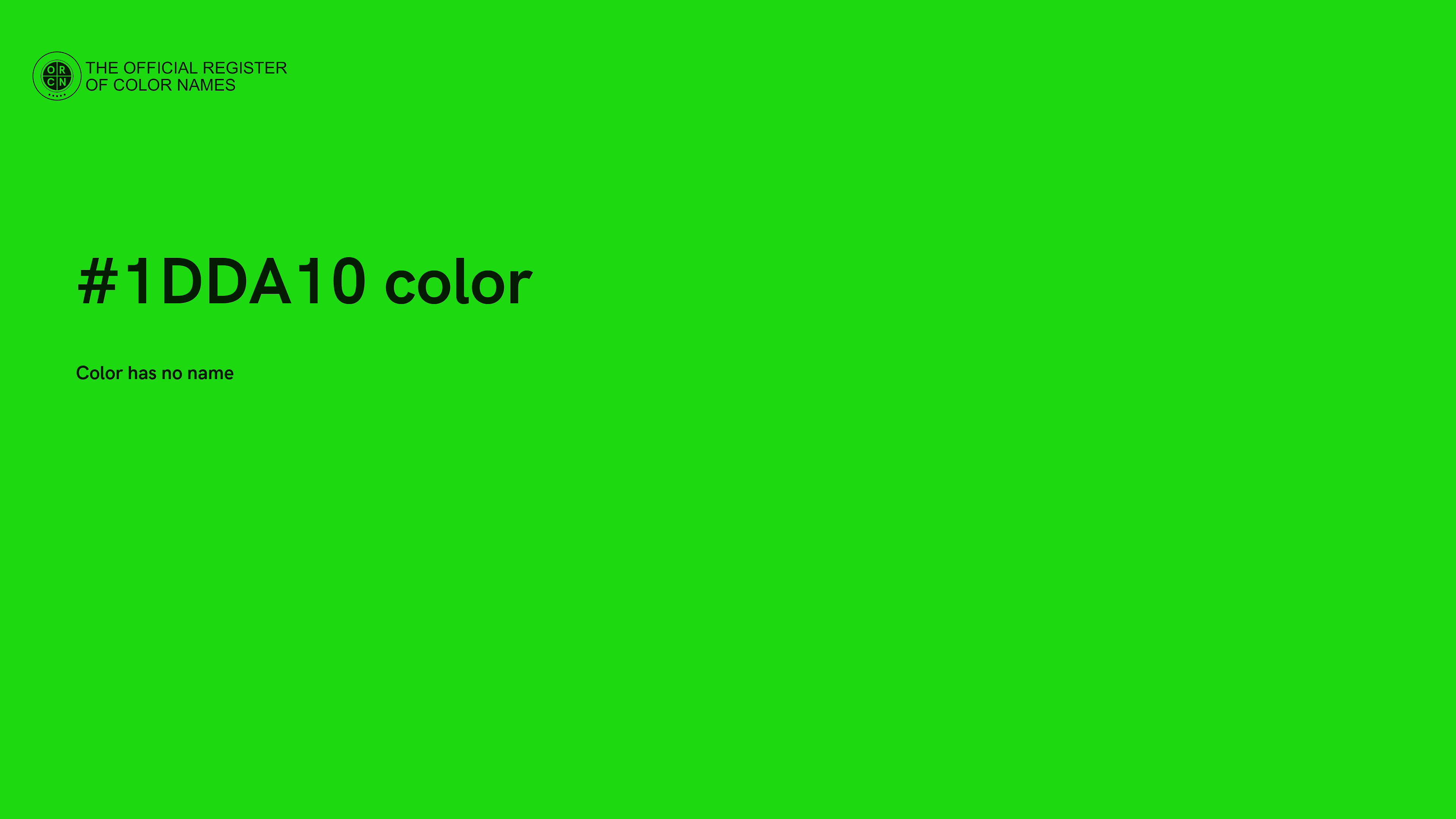 The digital color HEX #1DDA10 belongs to the Green Color Family featuring Full Saturation (Saturation Family) and Light (Brightness Family).