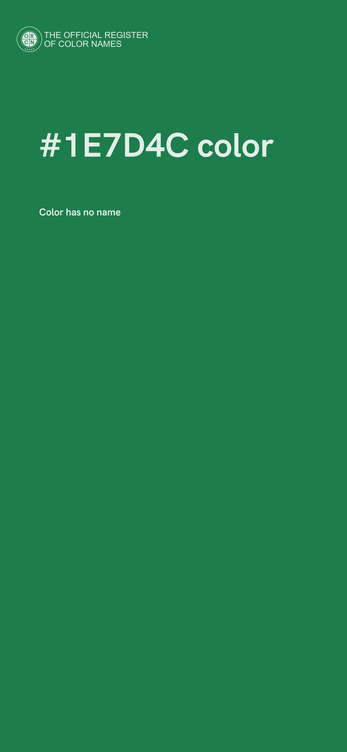 The digital color HEX #1E7D4C belongs to the Spring Green Color Family featuring High Saturation (Saturation Family) and Neutral (Brightness Family).