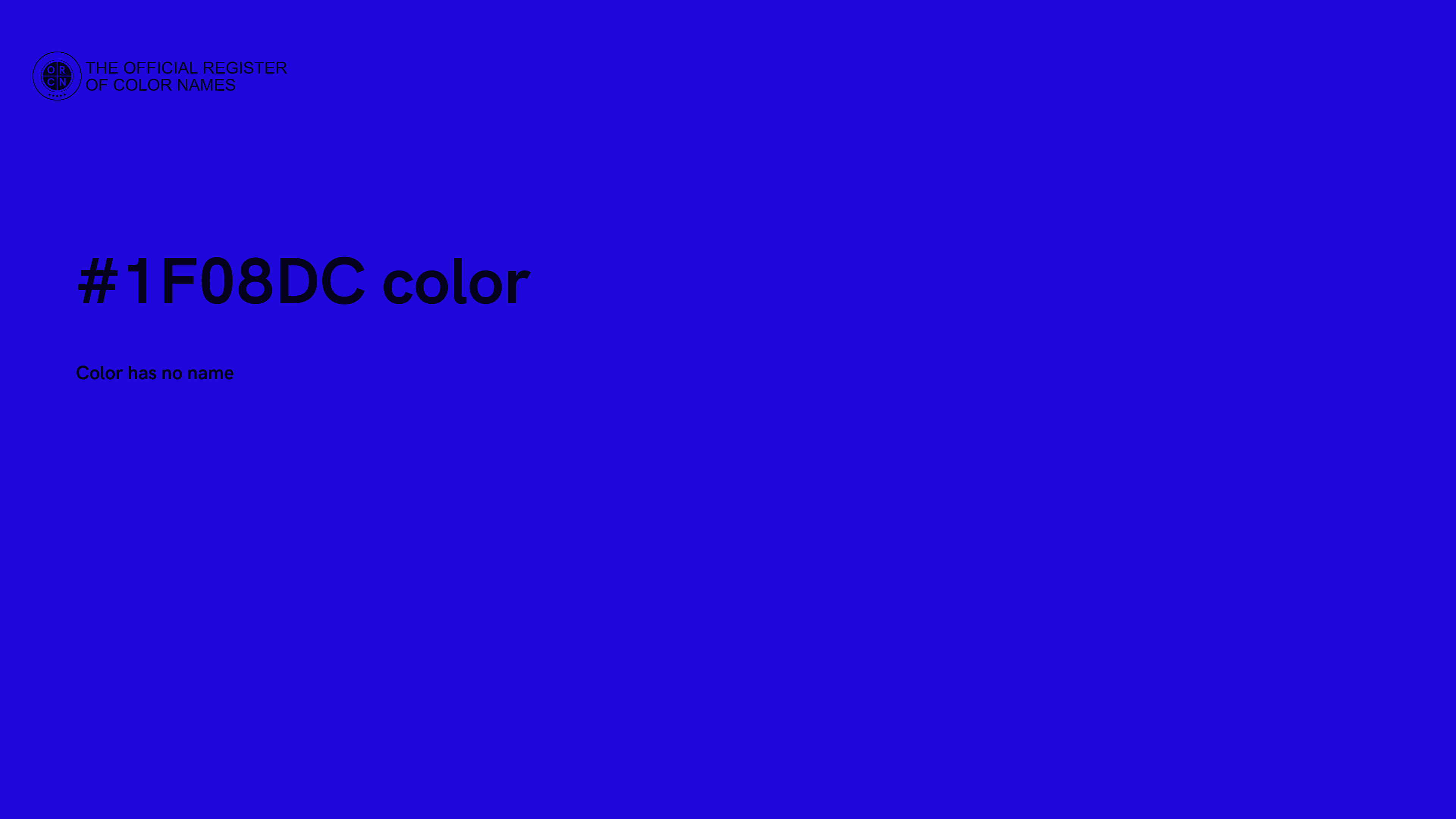 For printing in non digital world, #1F08DC is represented in CMYK as 74 Cyan, 83 Magenta, 0 Yellow, and 14 Black (Key) (C:74 M:83 Y:0 K:14).