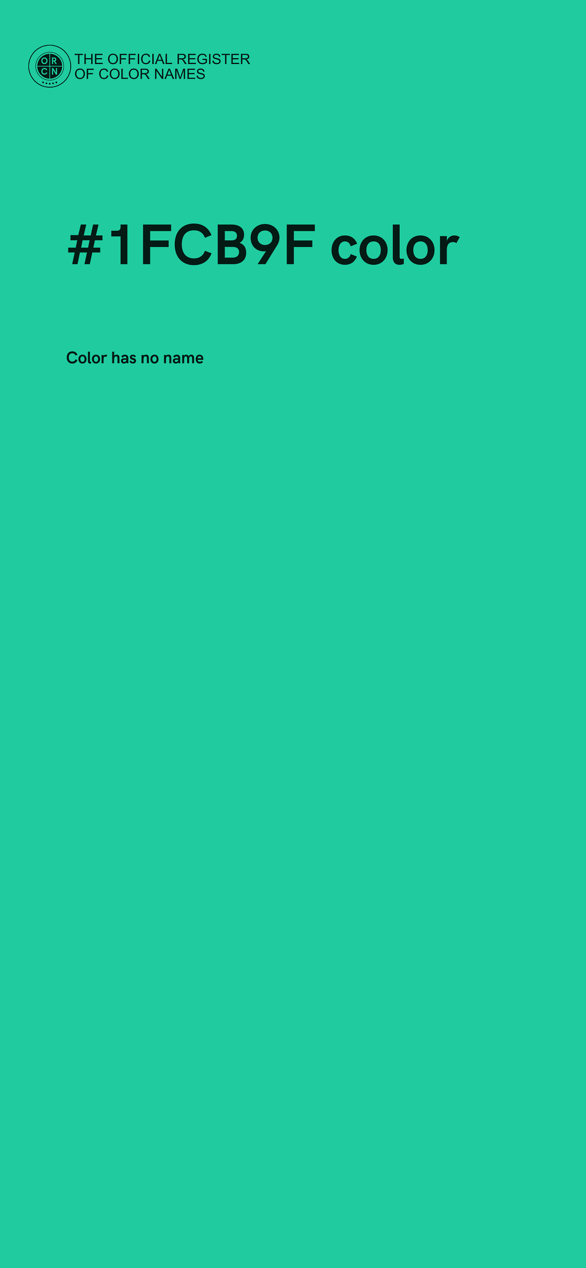 The digital color HEX #1FCB9F belongs to the Cyan Color Family featuring High Saturation (Saturation Family) and Light (Brightness Family).
