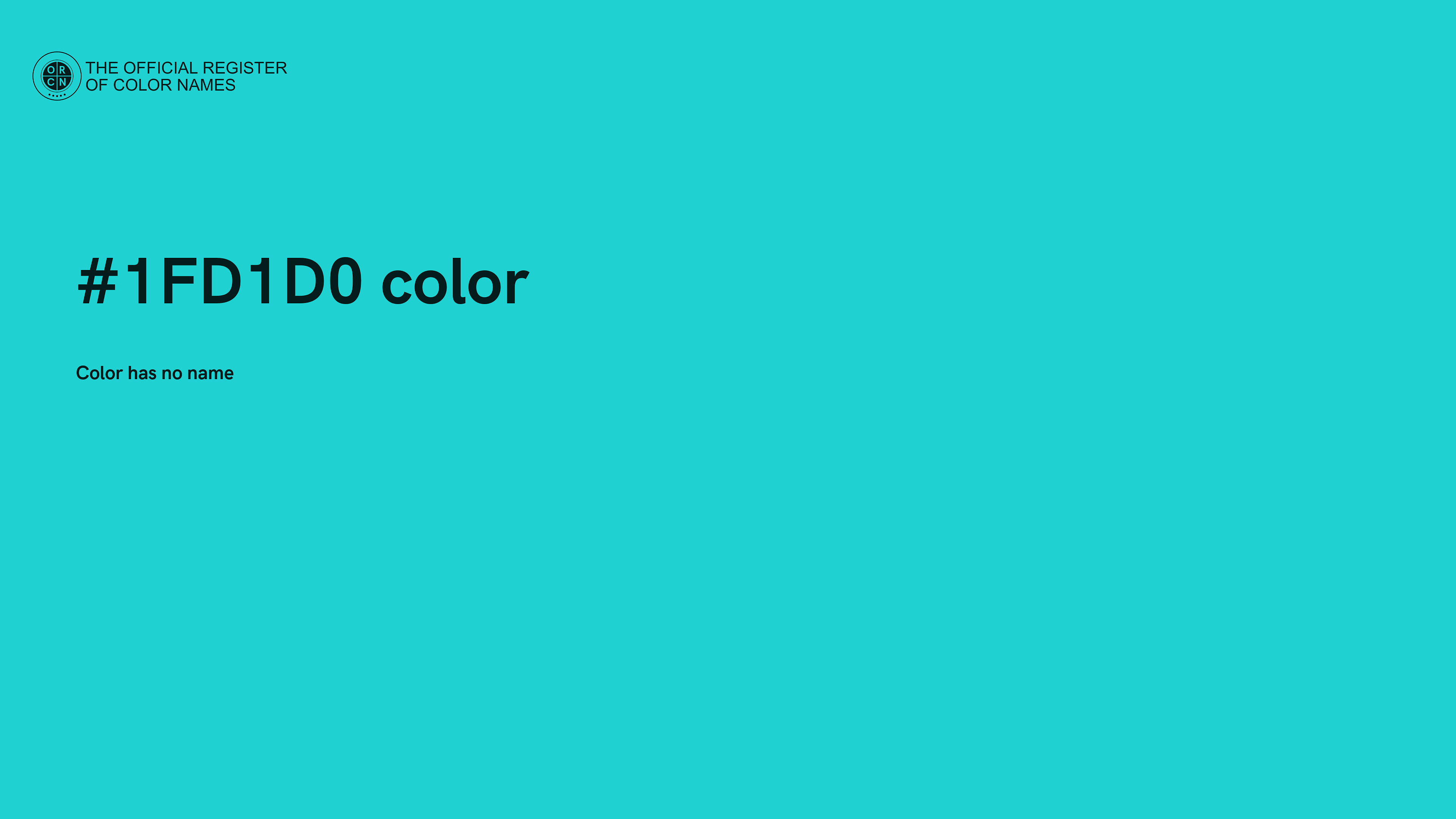 The digital color HEX #1FD1D0 belongs to the Cyan Color Family featuring High Saturation (Saturation Family) and Light (Brightness Family).