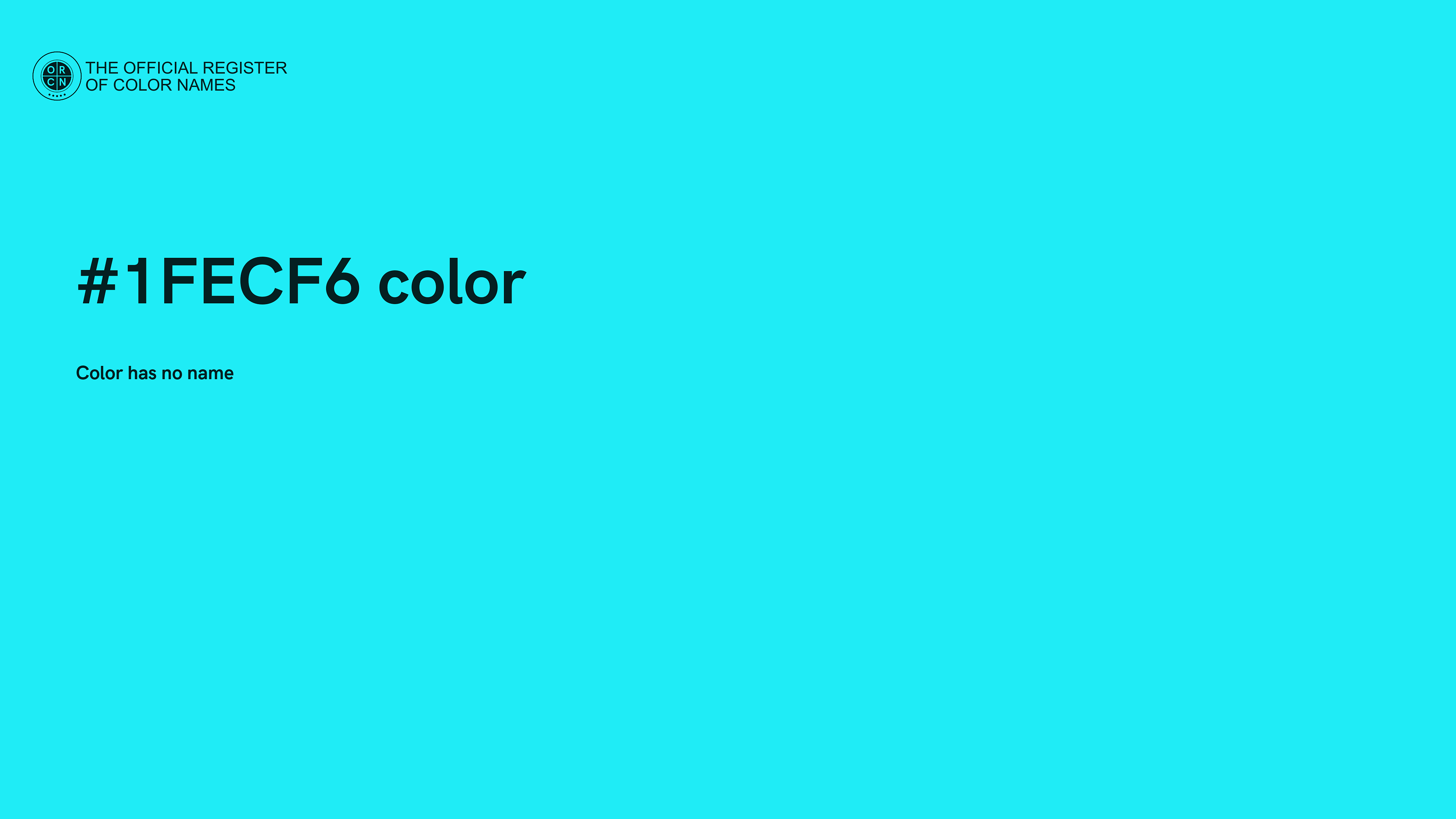 The digital color HEX #1FECF6 belongs to the Cyan Color Family featuring Full Saturation (Saturation Family) and Light (Brightness Family).