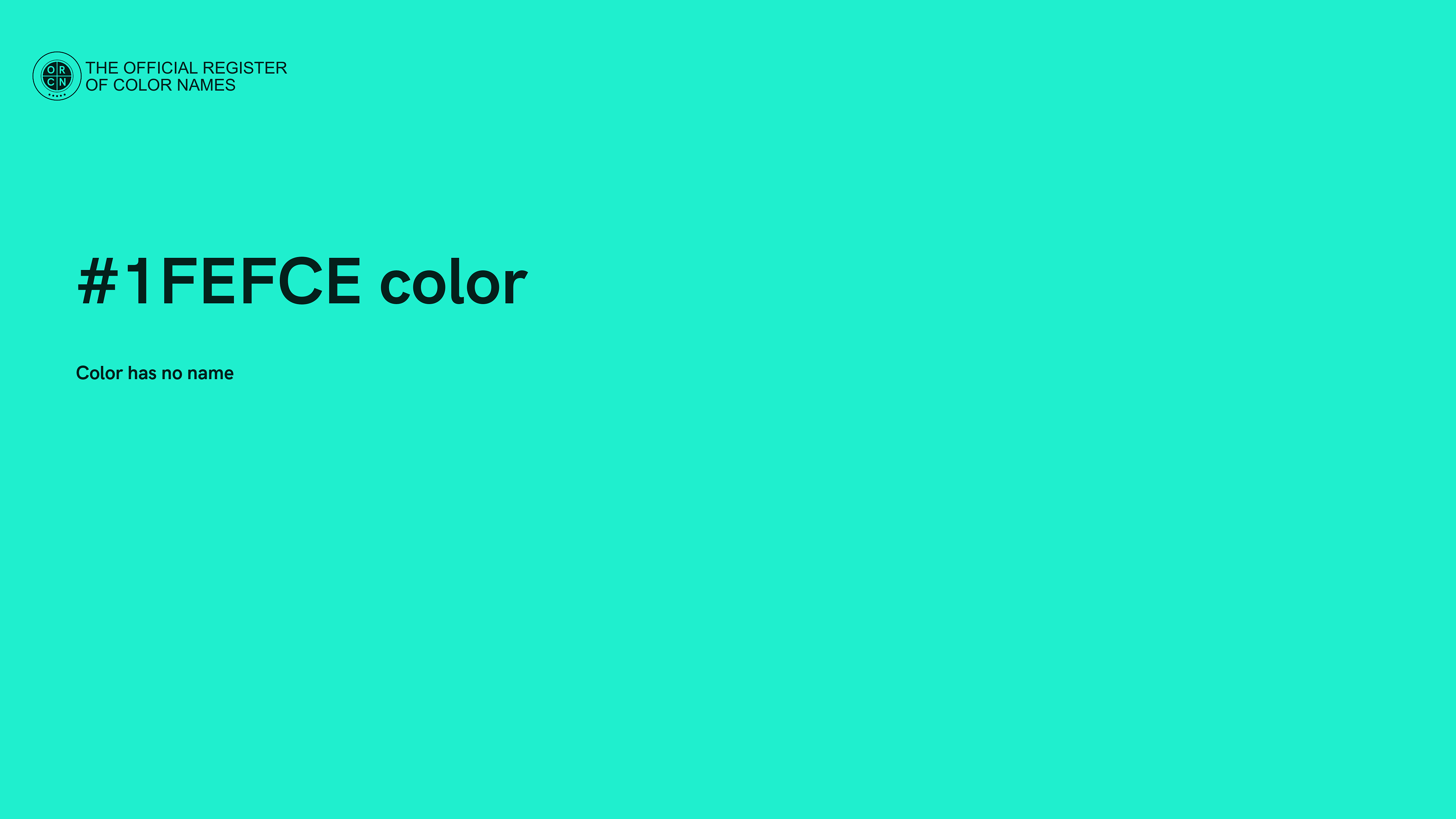 The digital color HEX #1FEFCE belongs to the Cyan Color Family featuring Full Saturation (Saturation Family) and Light (Brightness Family).