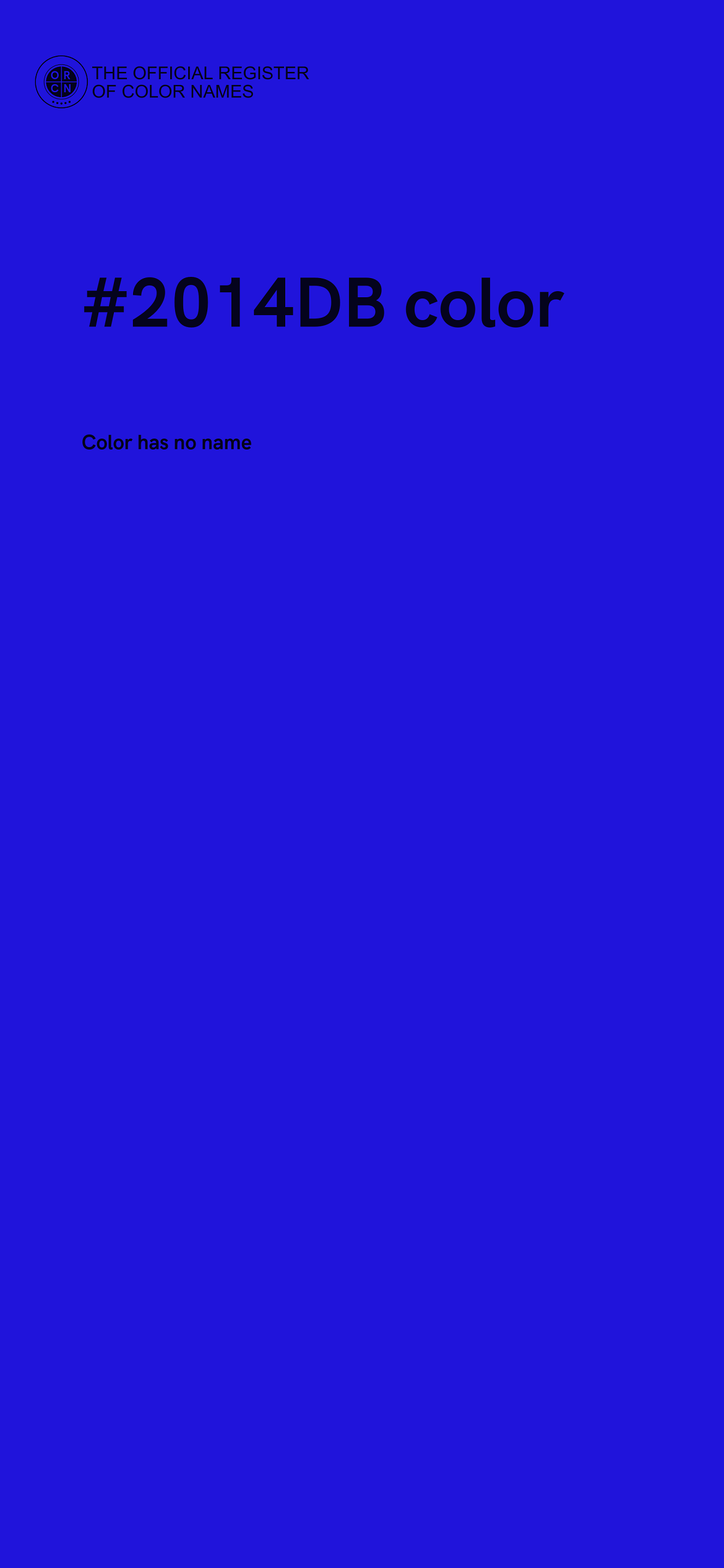 The digital color HEX #2014DB belongs to the Blue Color Family featuring High Saturation (Saturation Family) and Light (Brightness Family).